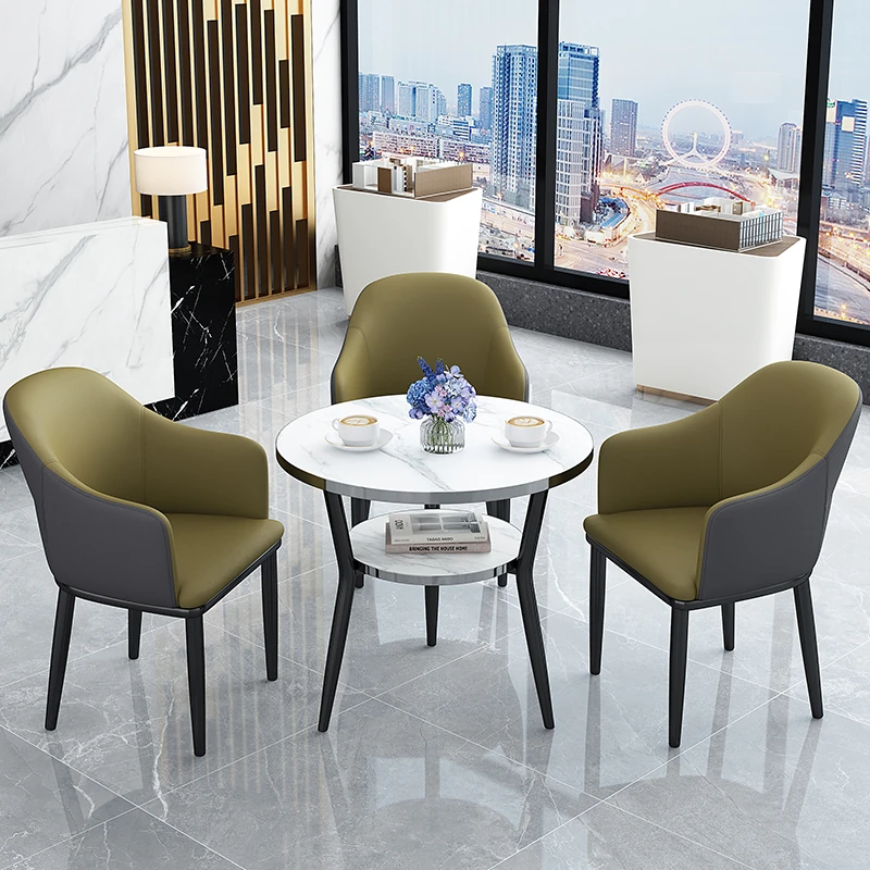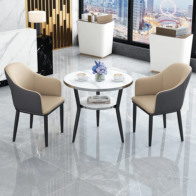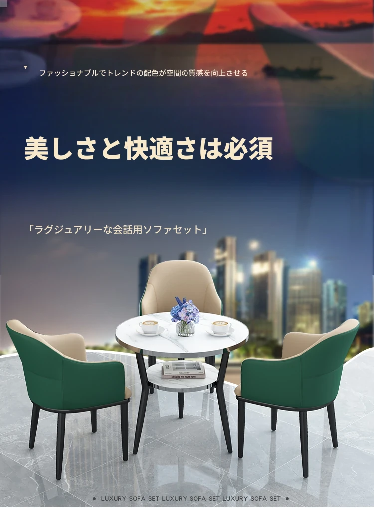 小型丸テーブル&チェアセット|バルコニーに最適!|美容院や店舗の休憩エリアにぴったり|リラックスした会話や商談に最適な茶卓|おしゃれで便利なデザインで、心地よい空間を演出します!