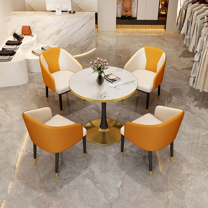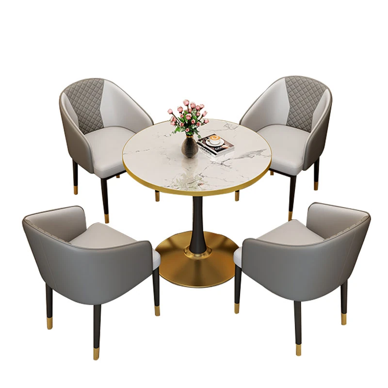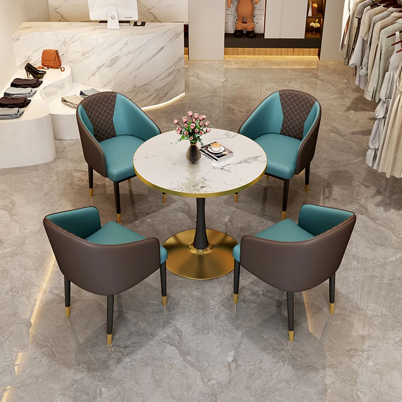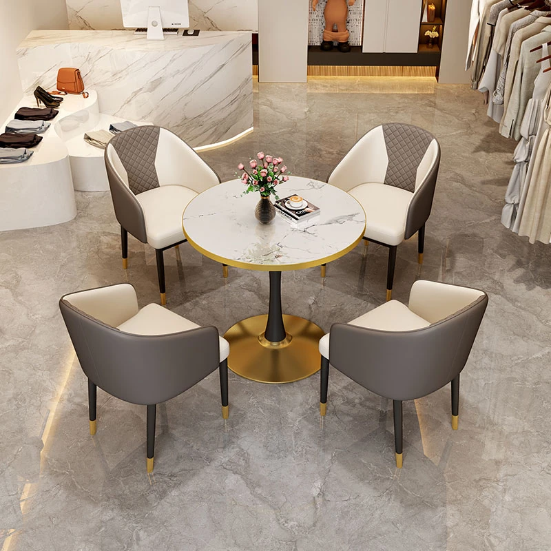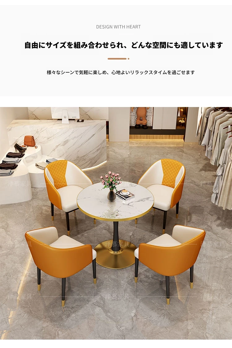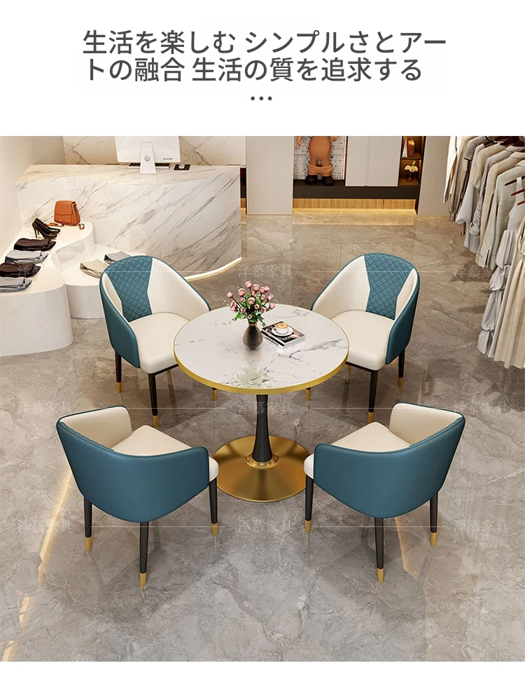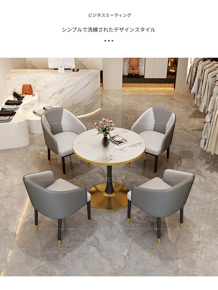洗練されたシンプルデザインのビジネスミーティングテーブルとチェアセット - 4Sショールームやカフェに最適なリラックスできる小さな円形テーブル。居心地の良い空間を演出し、顧客との商談をスムーズに!
