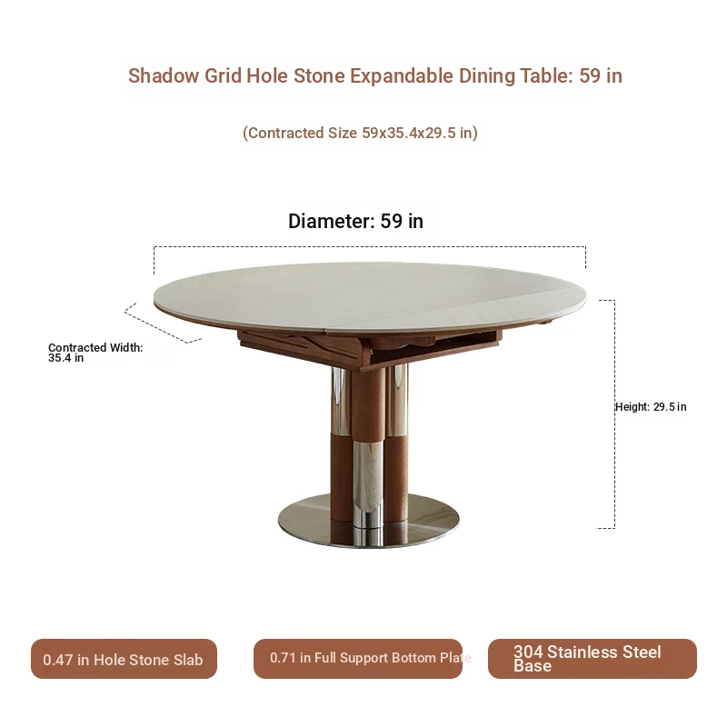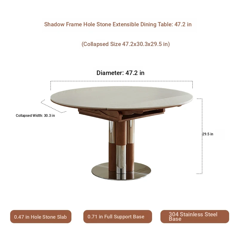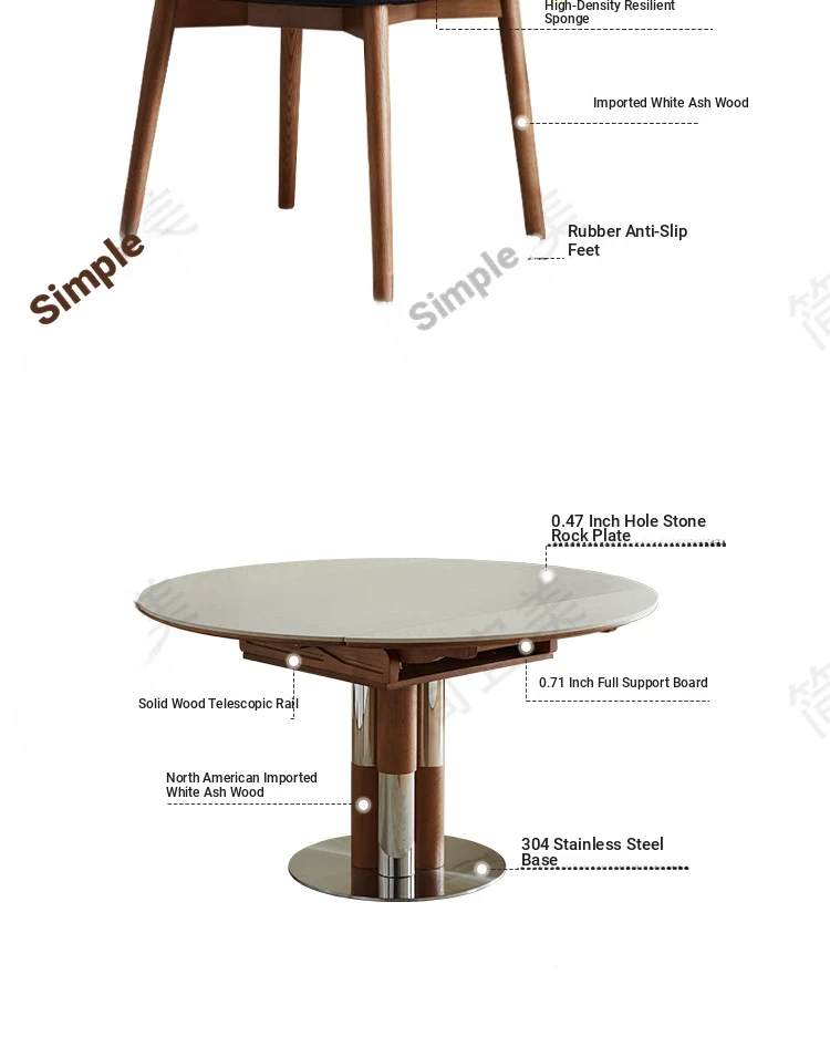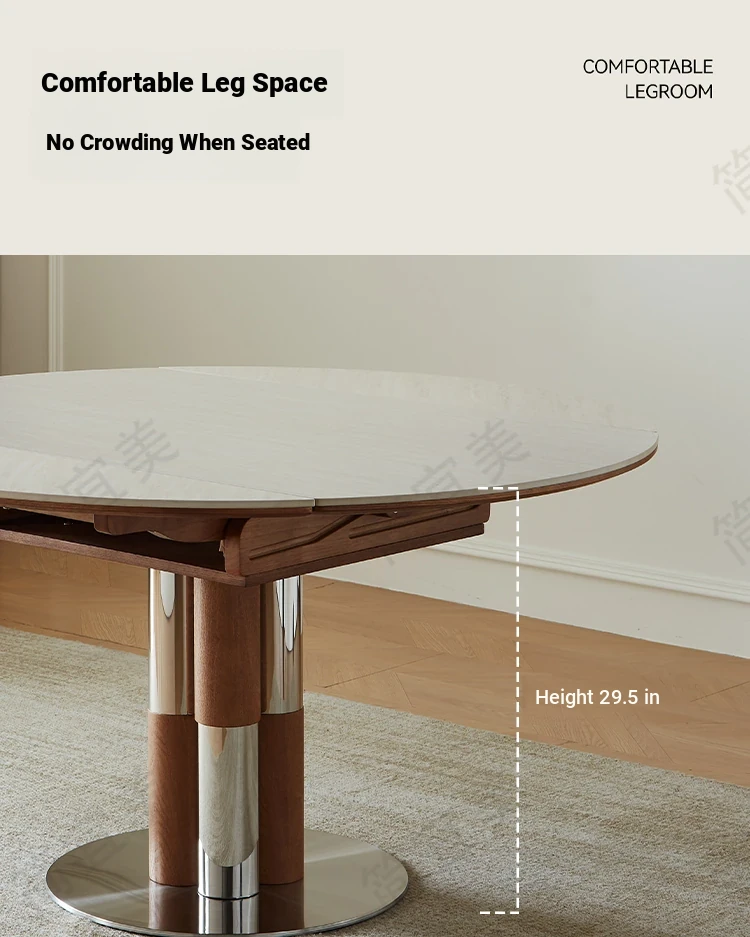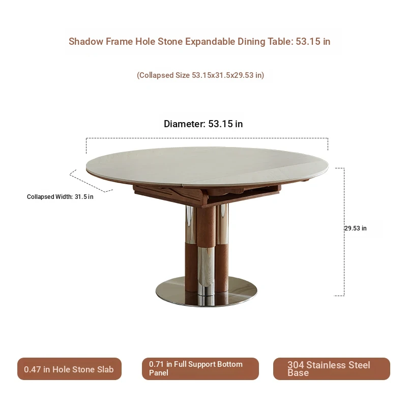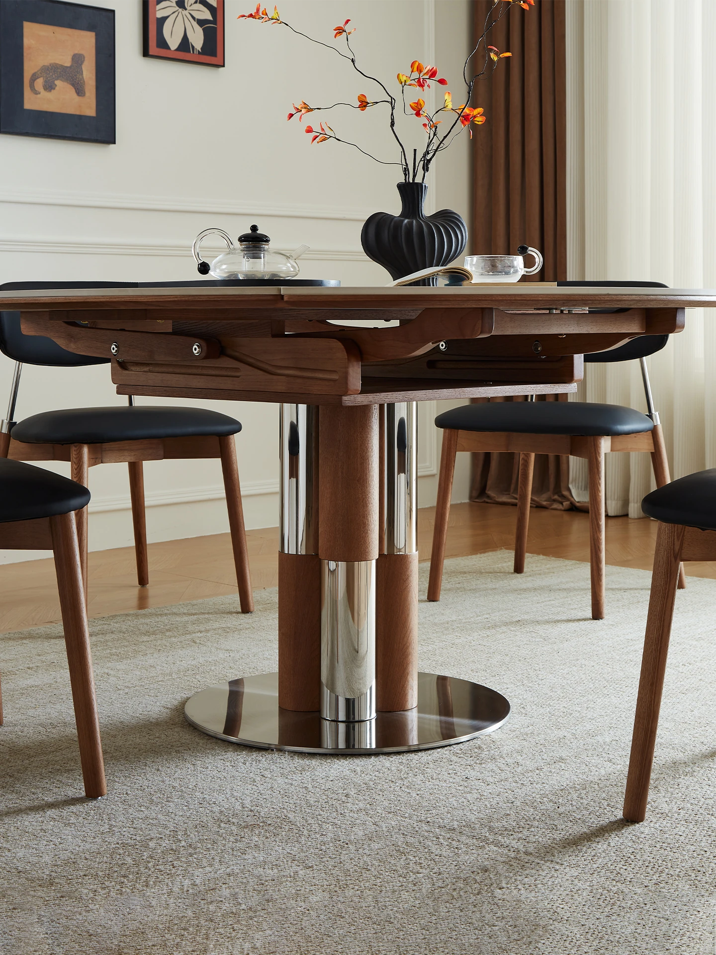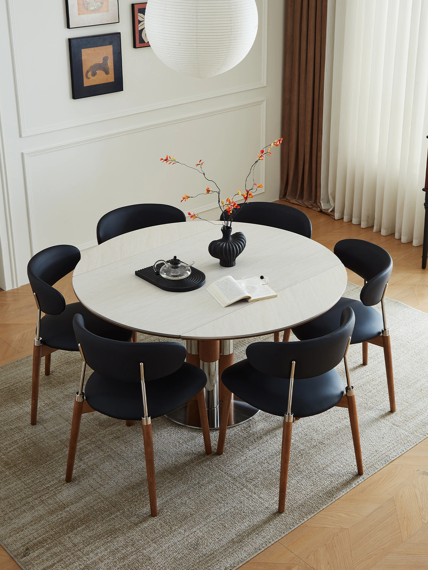 Expandable Round Dining Table and Chair Set with Natural Stone Surface – Bauhaus Vintage Style Solid Wood, Versatile for Home Use as Square or Round Dining Table.