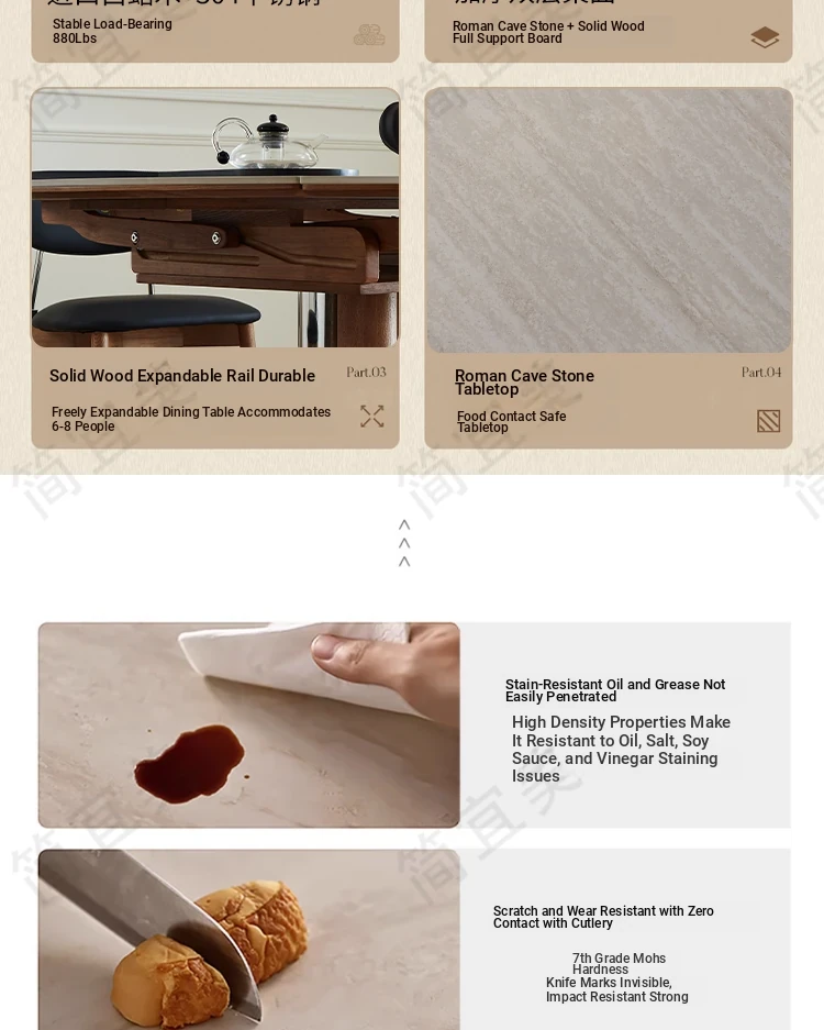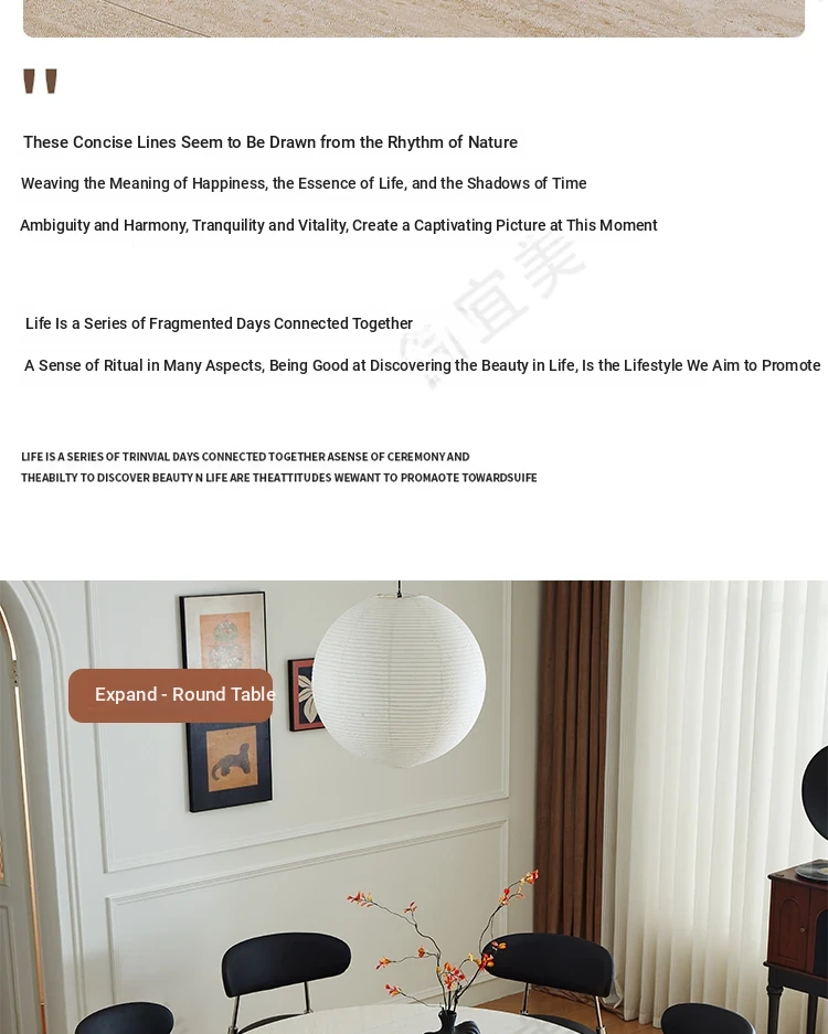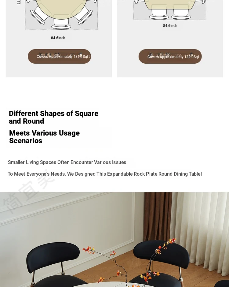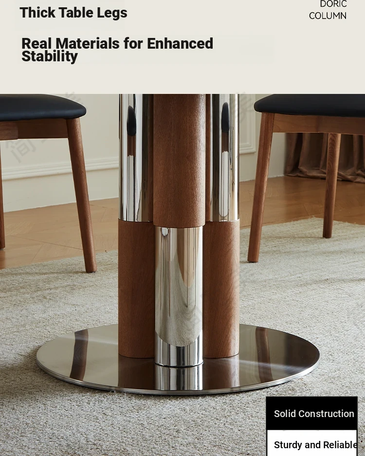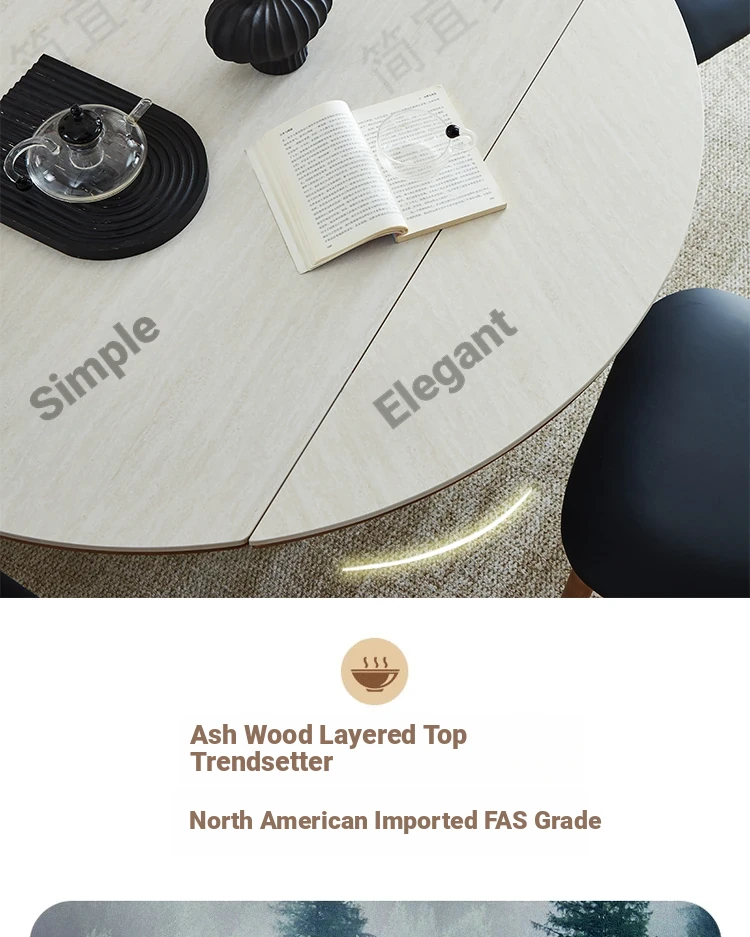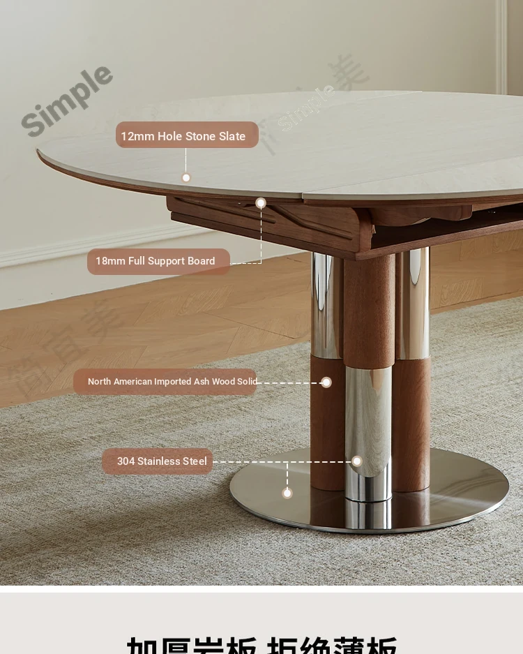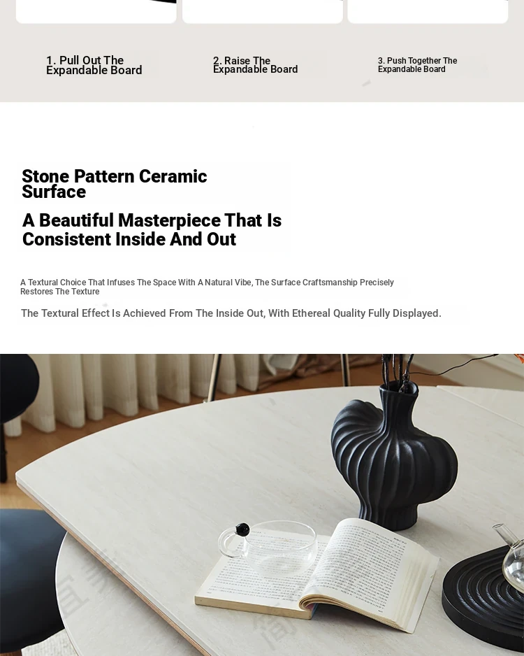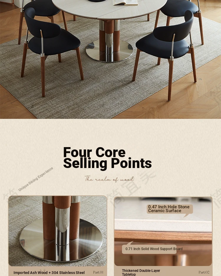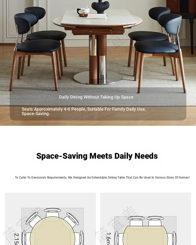 Expandable Round Dining Table and Chair Set with Natural Stone Surface – Bauhaus Vintage Style Solid Wood, Versatile for Home Use as Square or Round Dining Table.