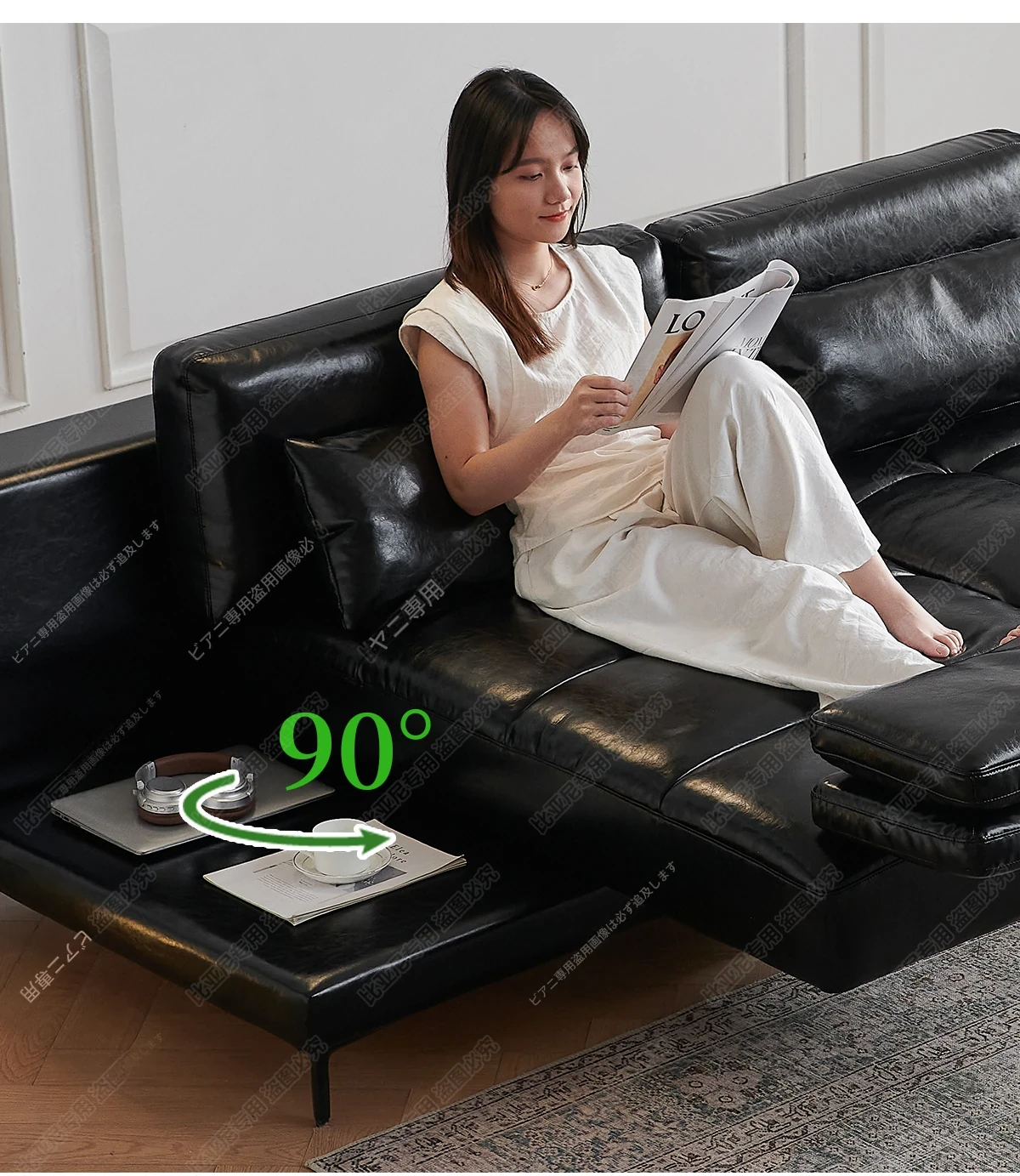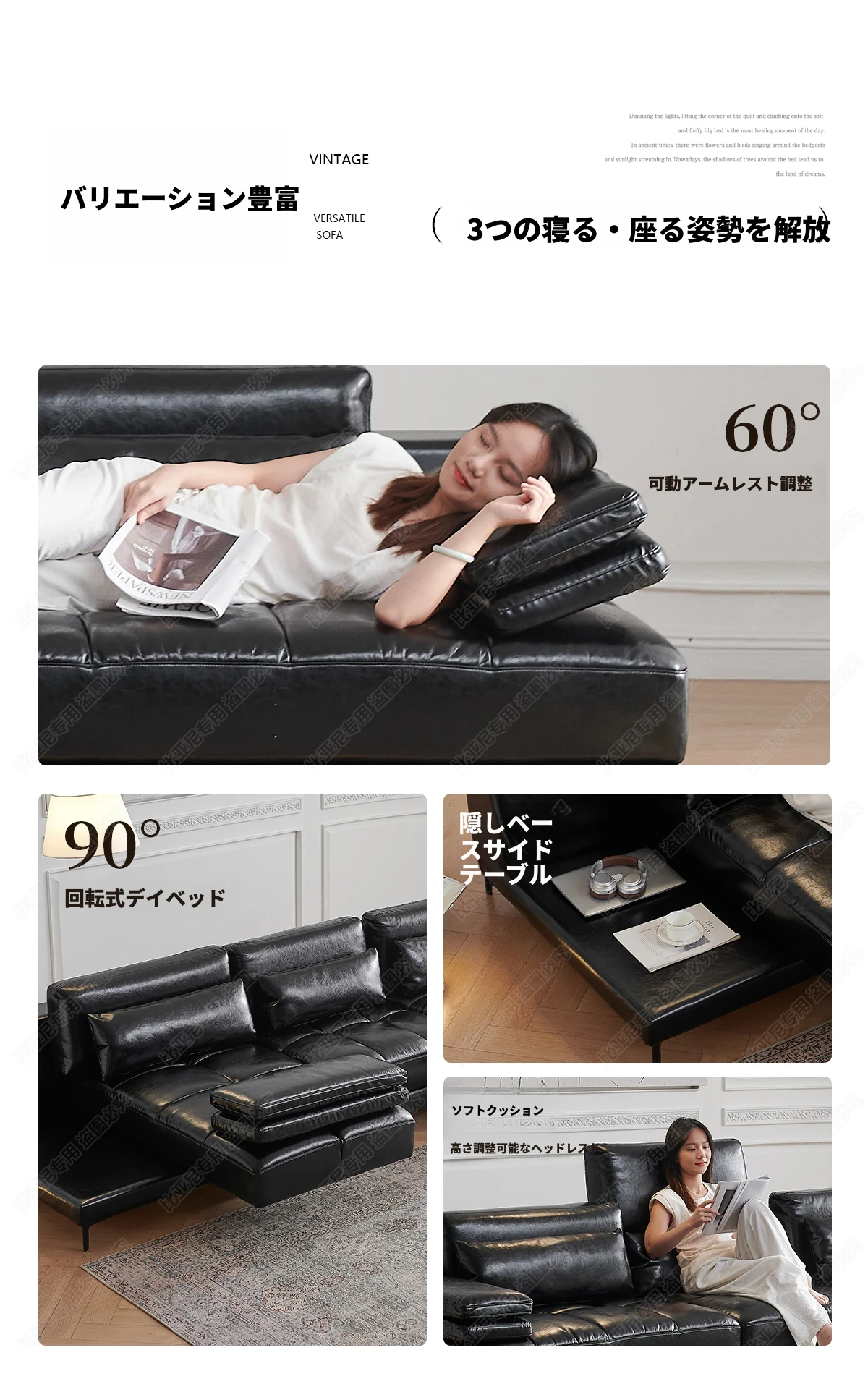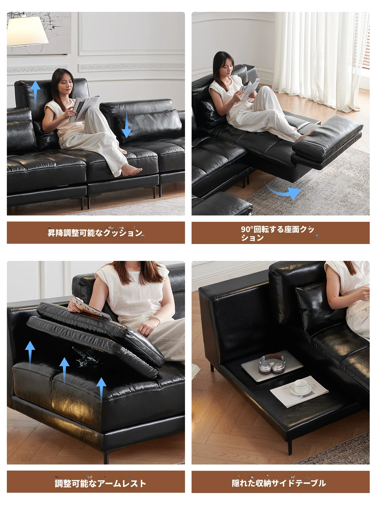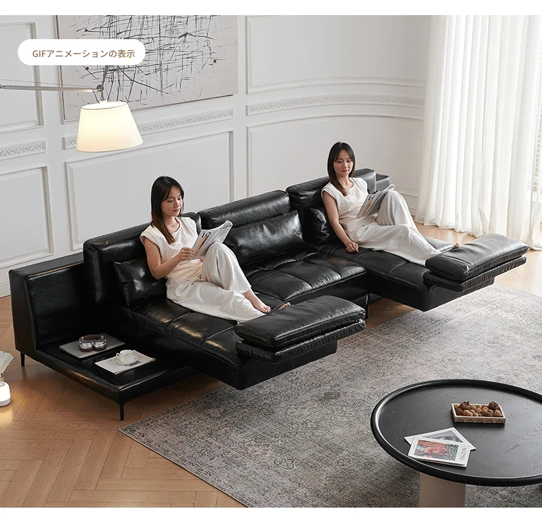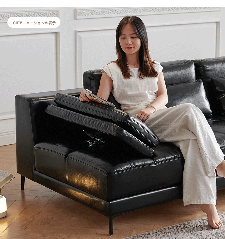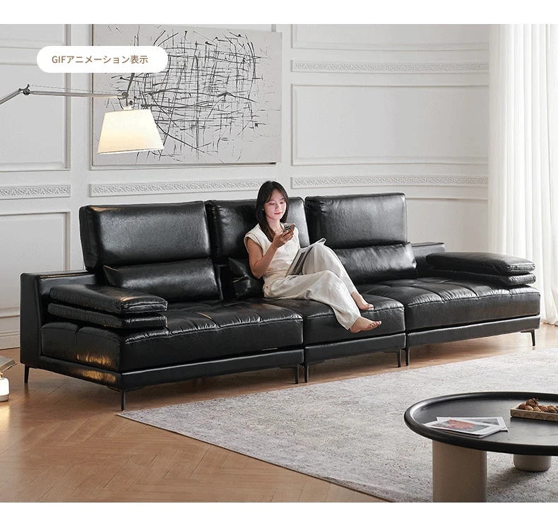 フランス風レトロオイルレザー星座ソファー|小型住宅に最適!回転調整可能な広々とした座面で、心地よいひとときを。直線デザインでスタイリッシュな空間を演出します。