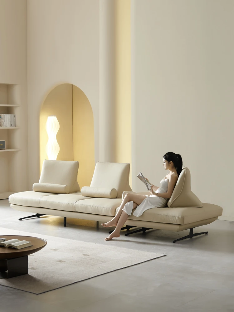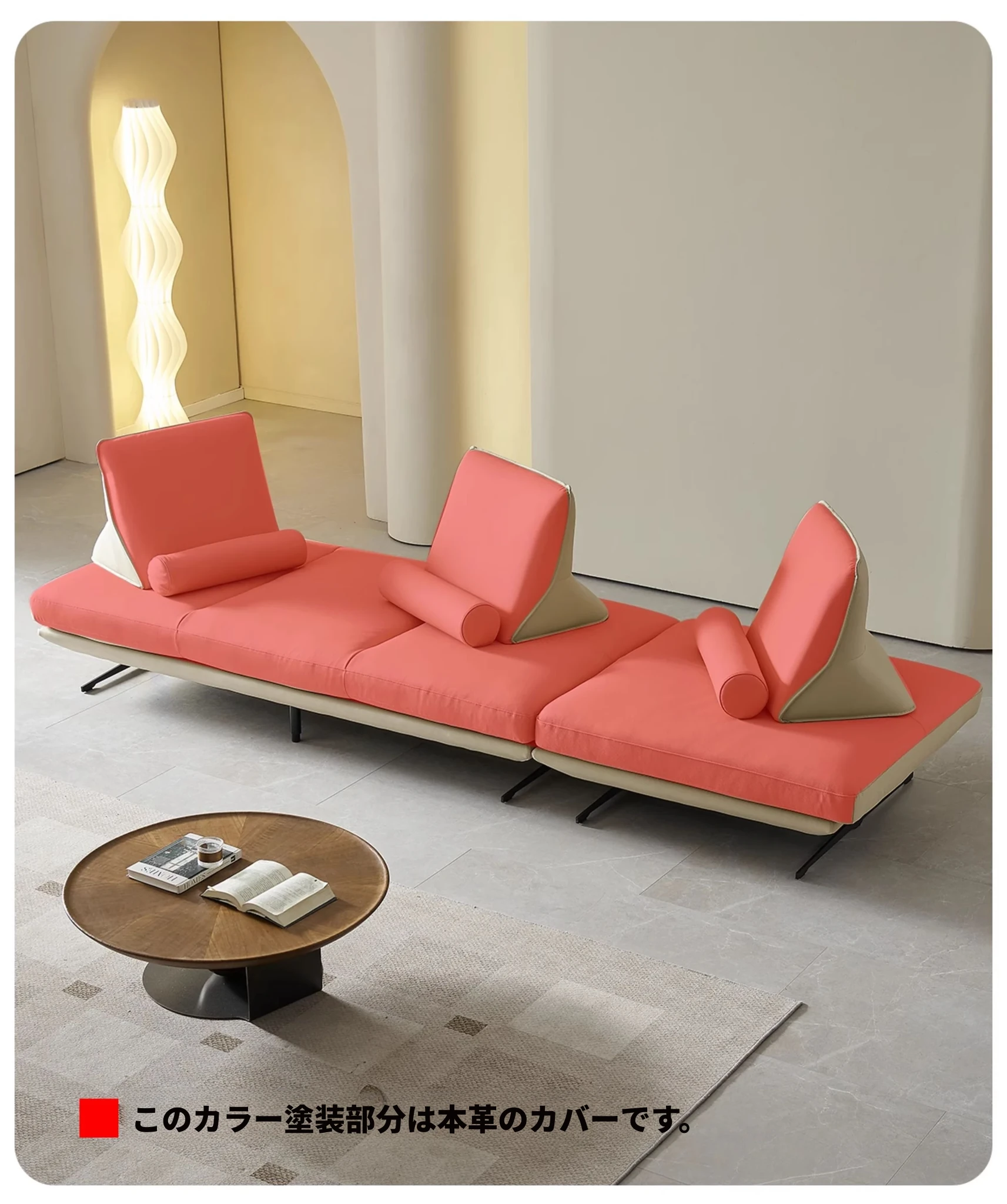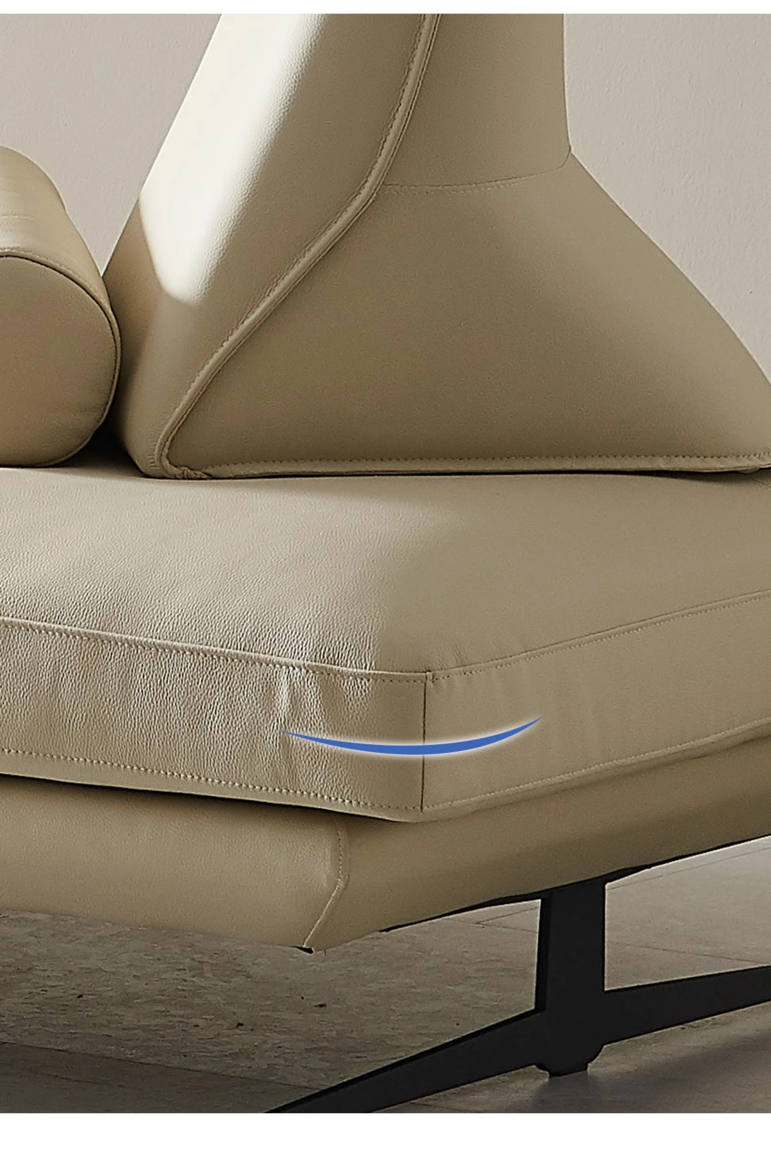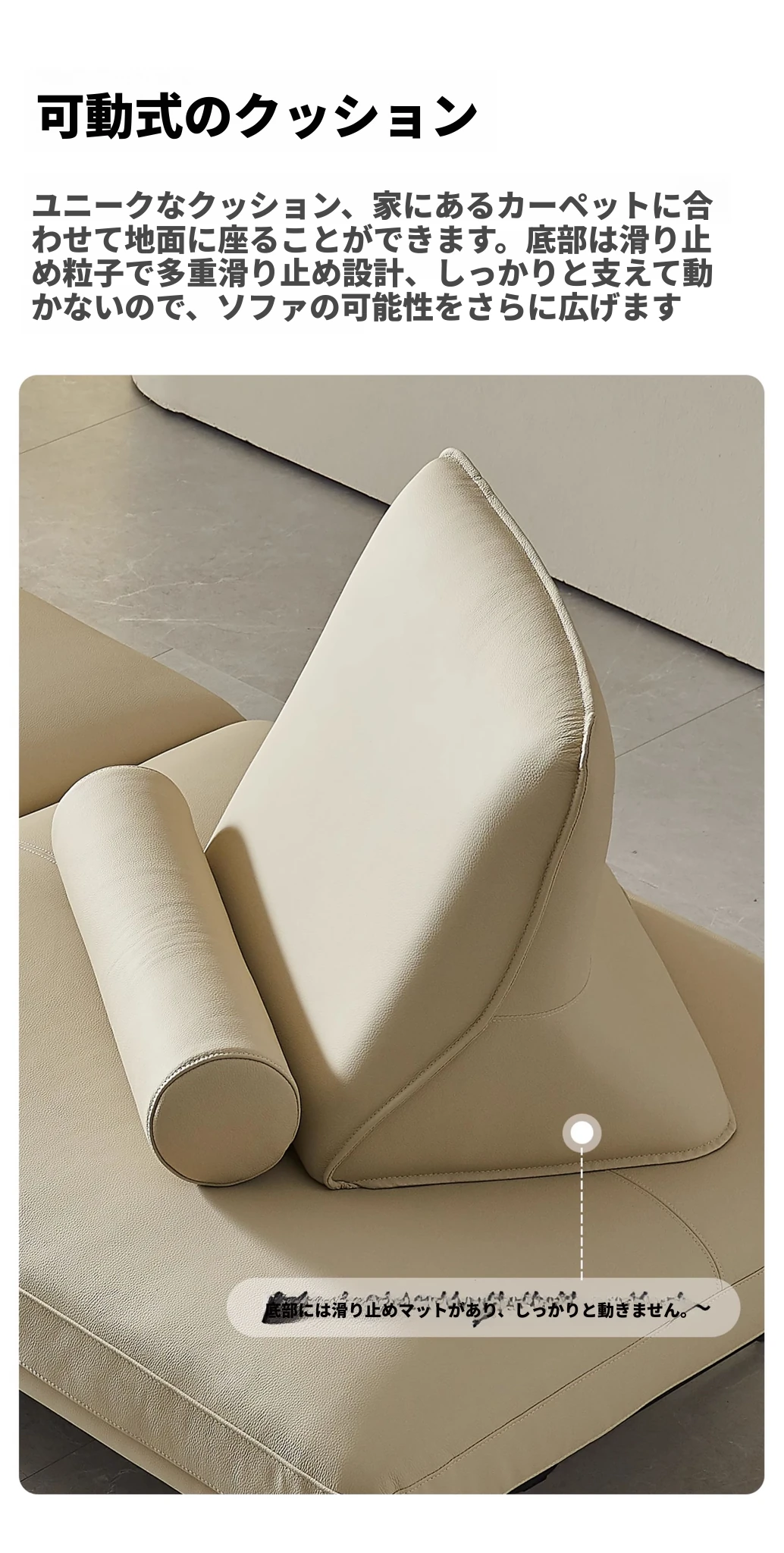 イタリアンミニマリズムの高級感!ハンドルなしの小型ダブルフェイスソファ。トーフブロックデザインとクリーミーな本革仕立てで、洗練された空間を演出。おしゃれなインテリアにぴったりのアイテムです!