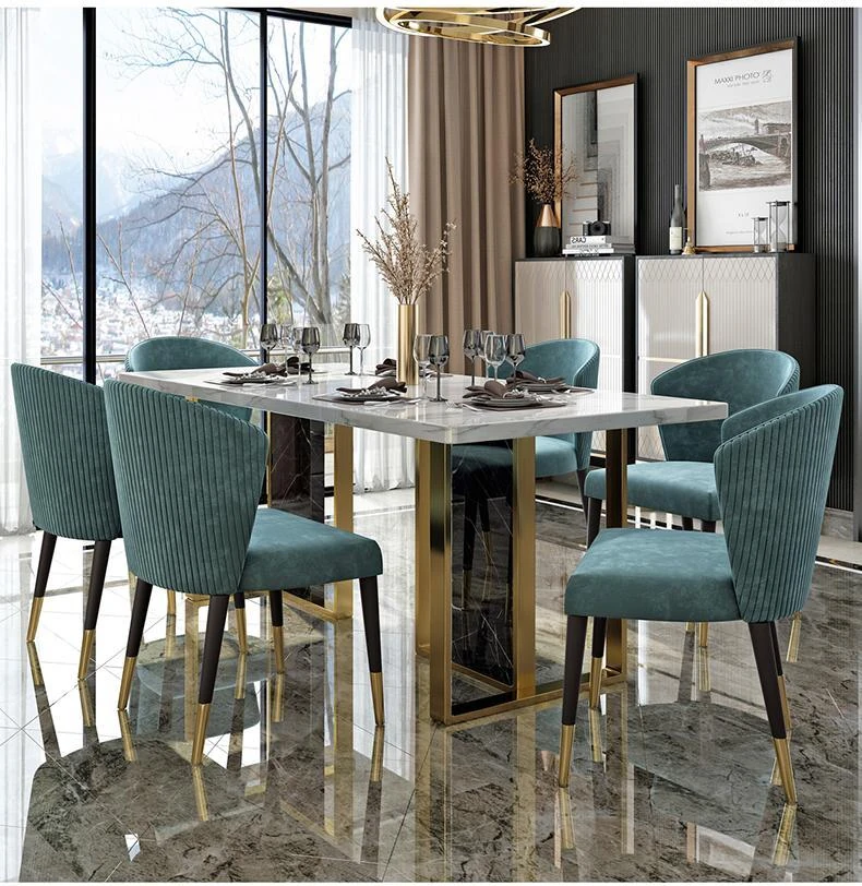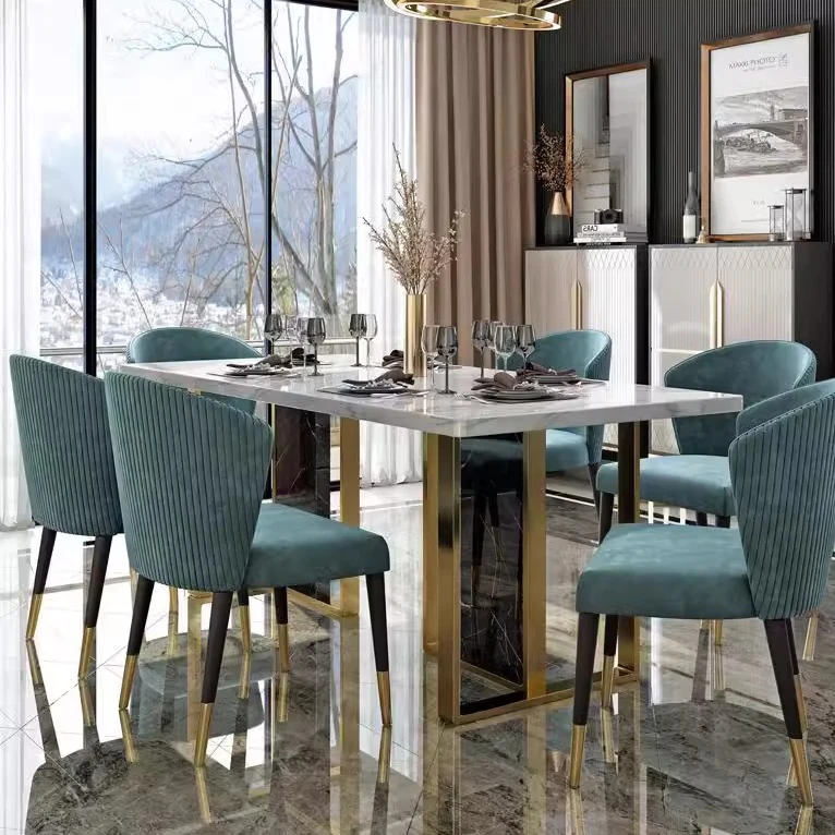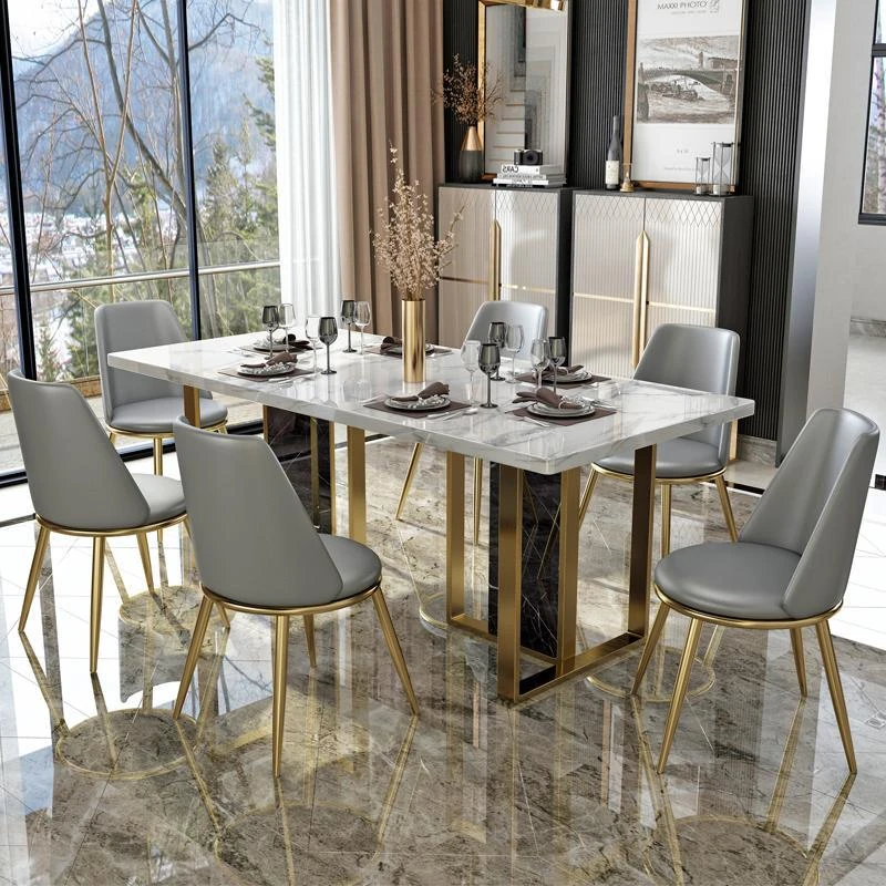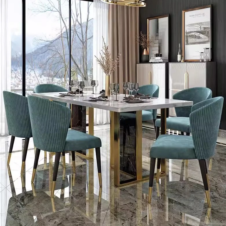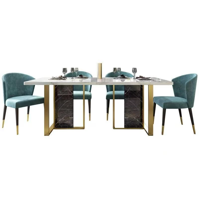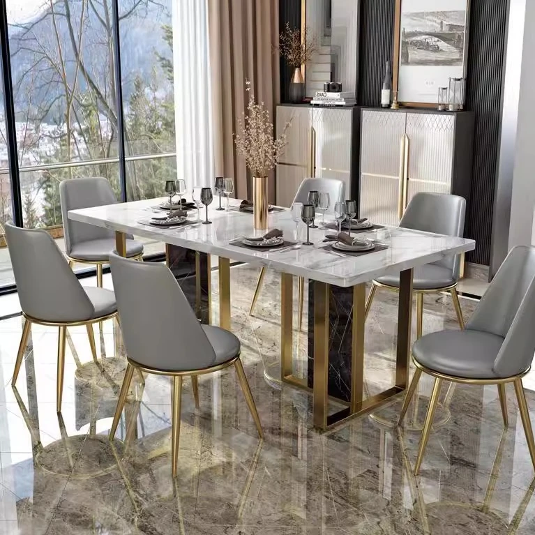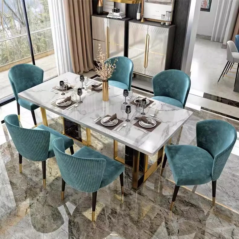 イタリアンスタイルの軽奢岩板ダイニングテーブル&チェアセット - モダンでシンプルなデザイン、小型住宅にもぴったりな長方形の西洋料理用テーブル。食事を楽しむ特別な空間を演出します!