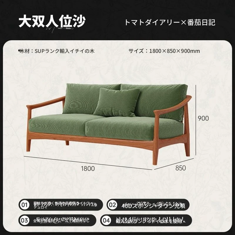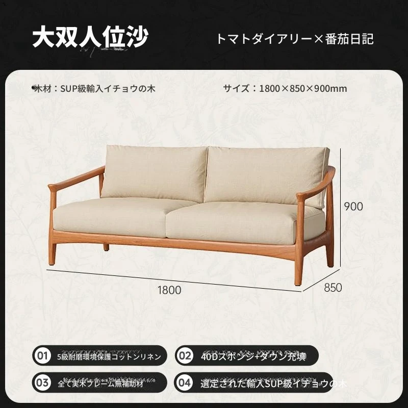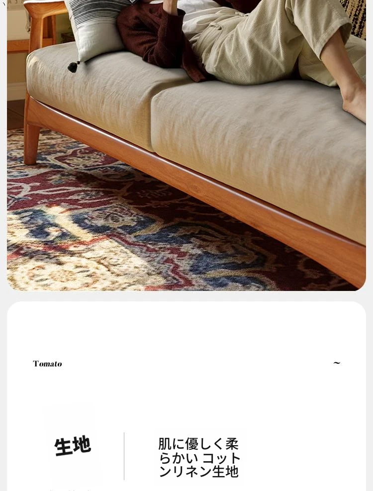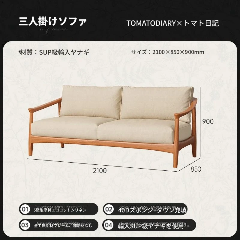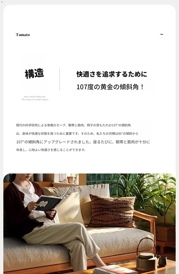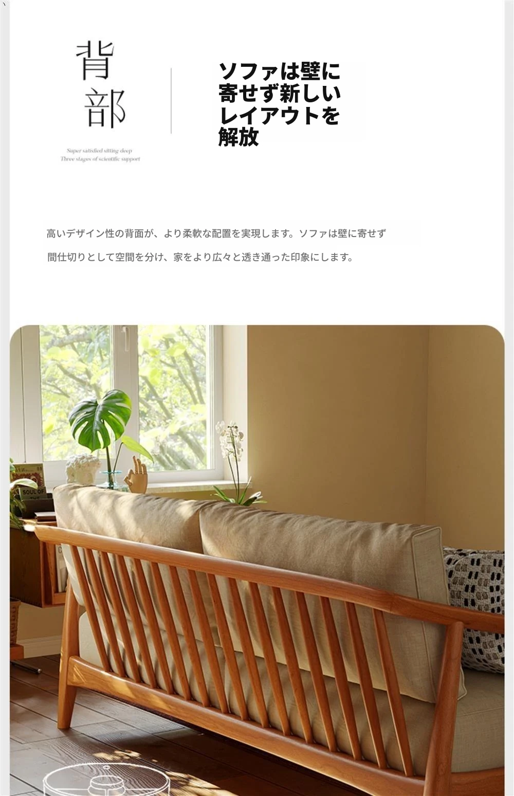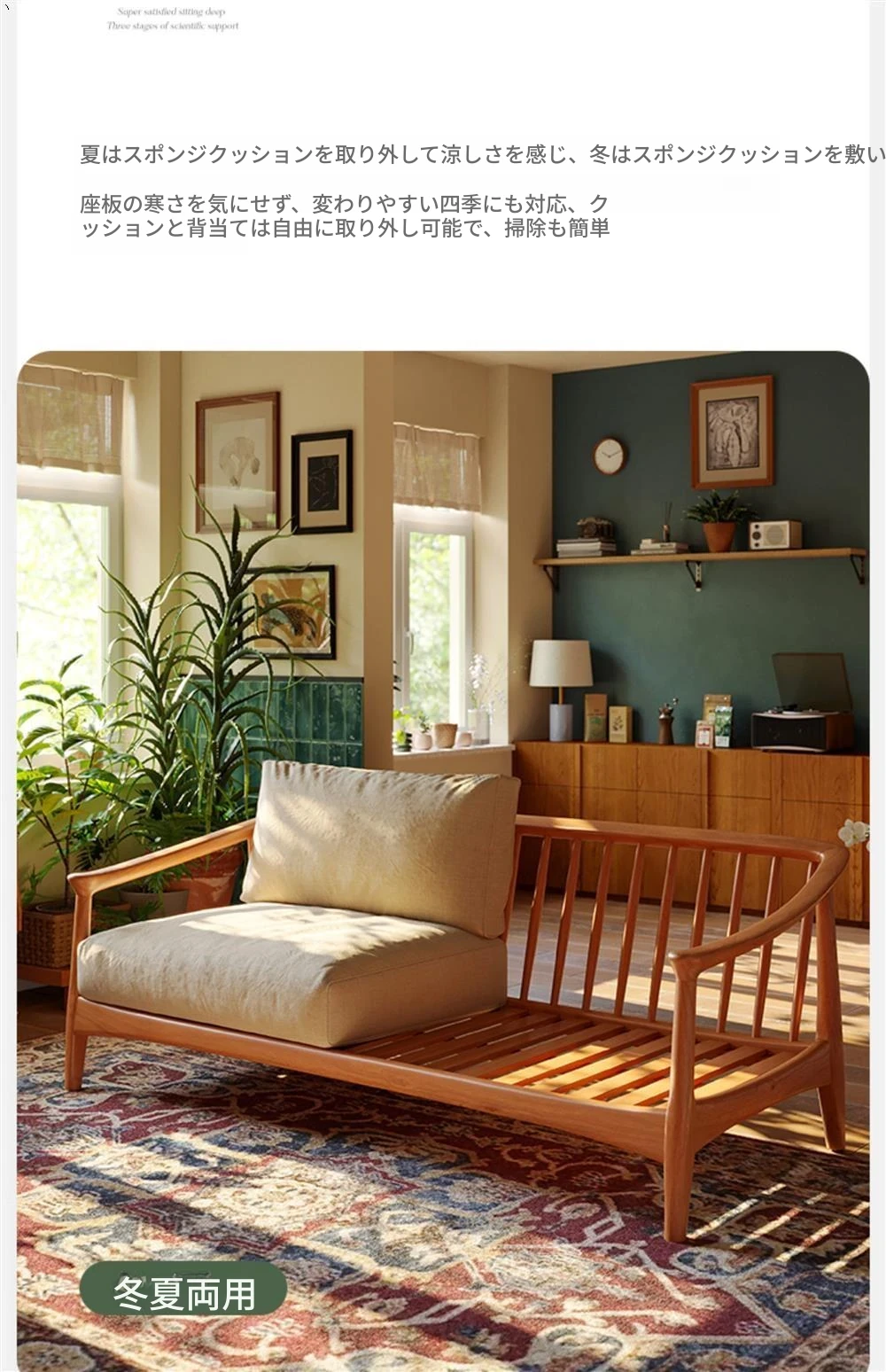 和風シンプルな天然木製ソファ|小型リビングに最適!洗えるカバー付き3人掛け、レトロな雰囲気のファブリックソファで心地よい空間を演出。