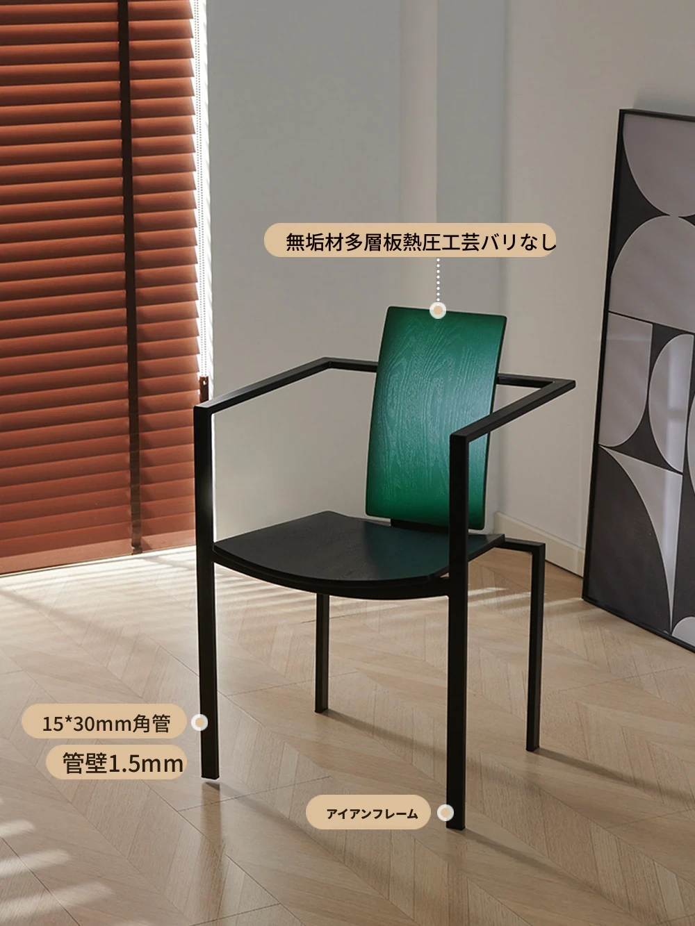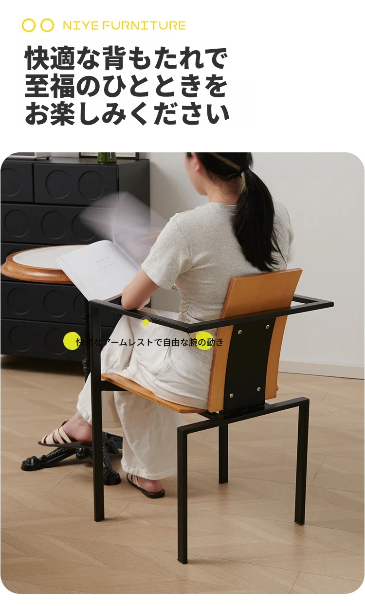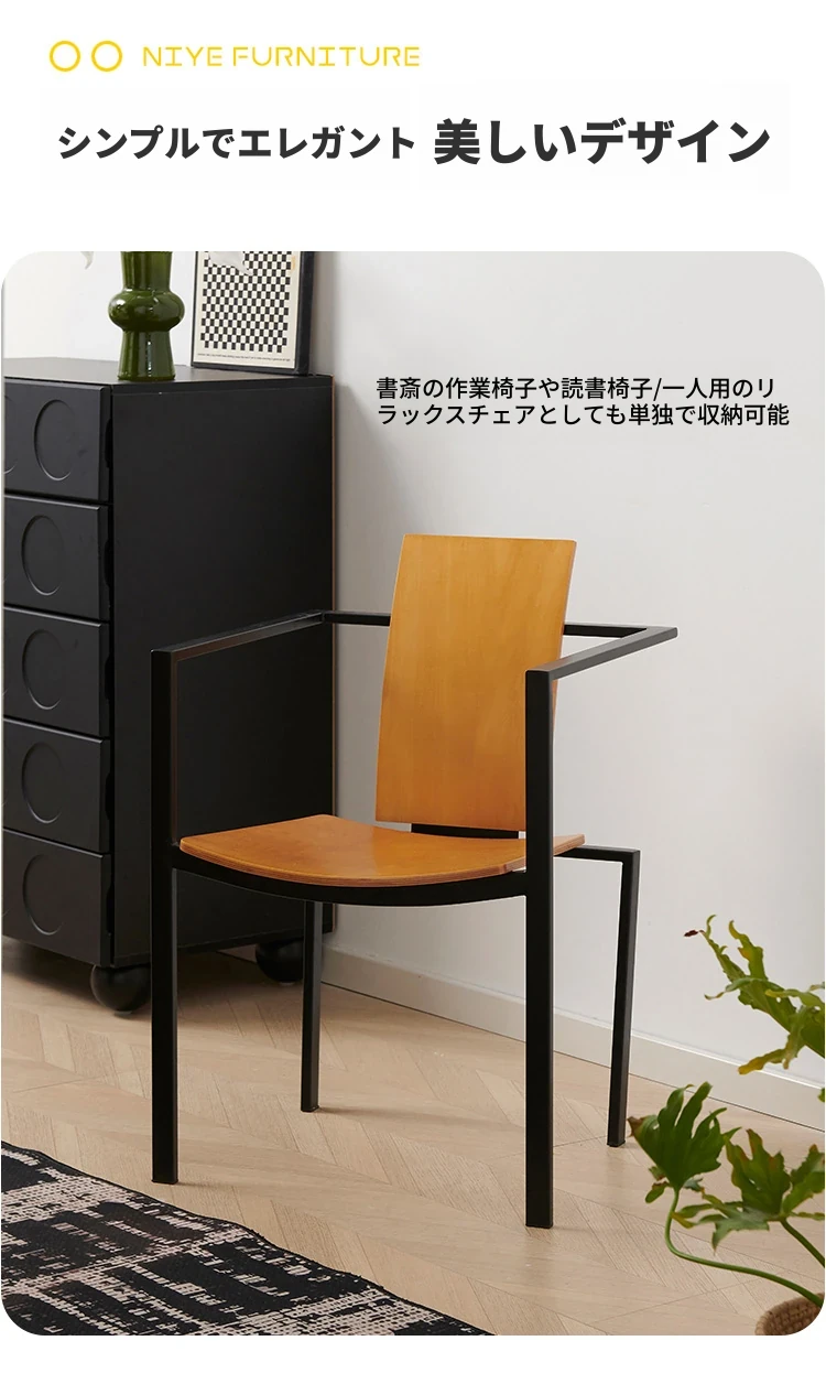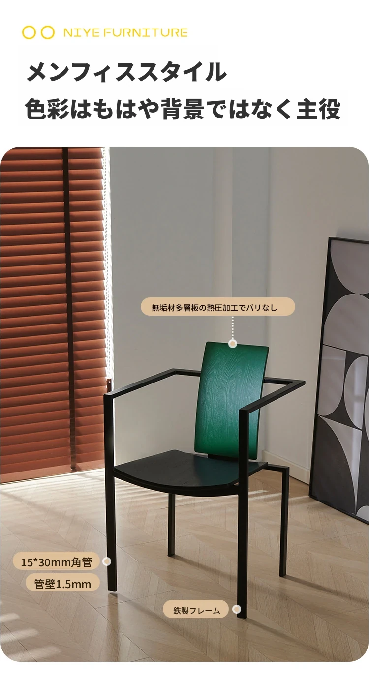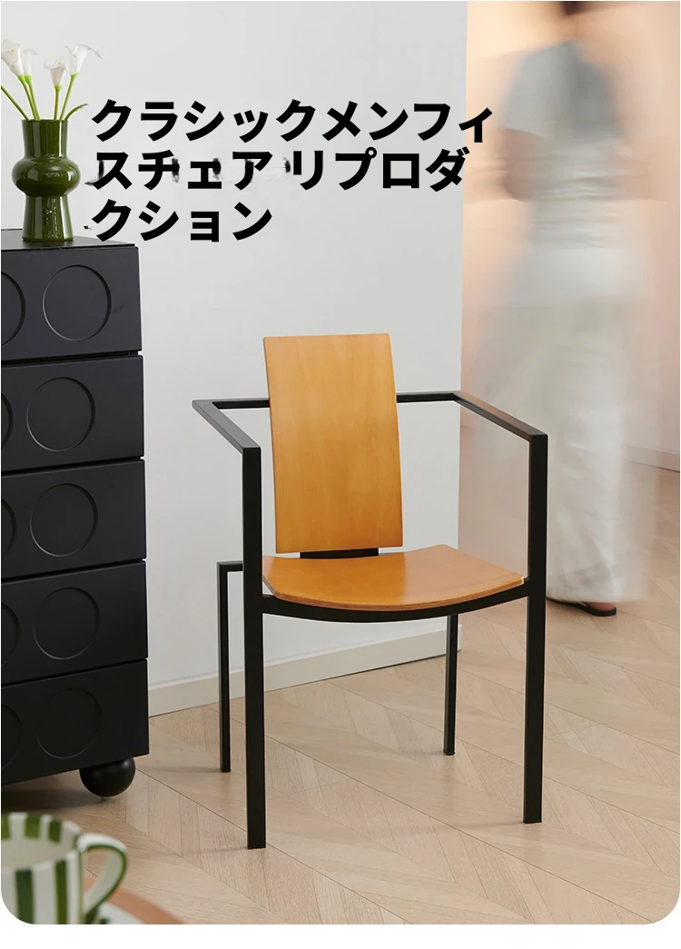 メンフィスチェア 北欧風 ミッドセンチュリー 家庭用 背もたれ付き シングルアーム ダイニングチェア アイアン製 リラックスデザイン 木製 デザイナーズチェア おしゃれなインテリアに最適!