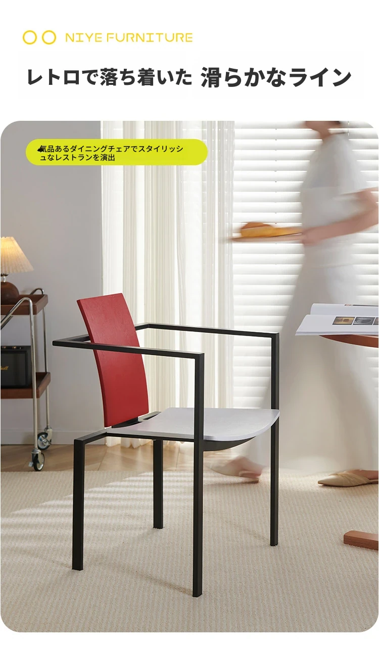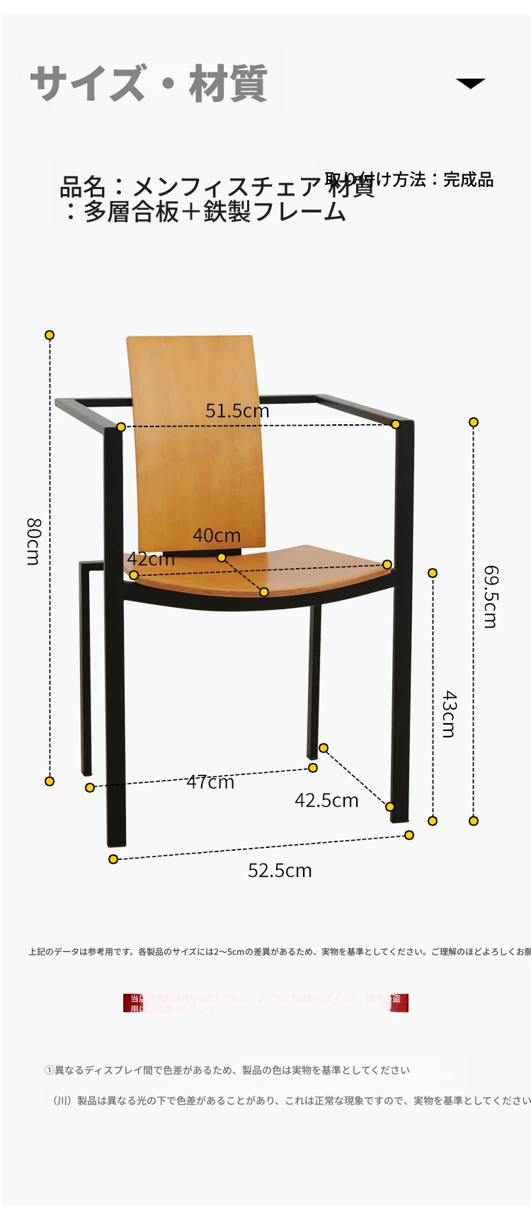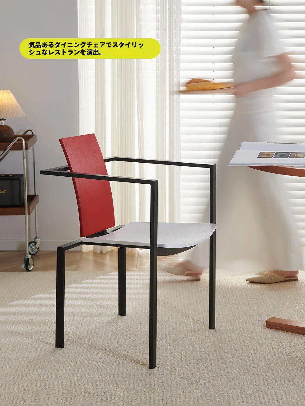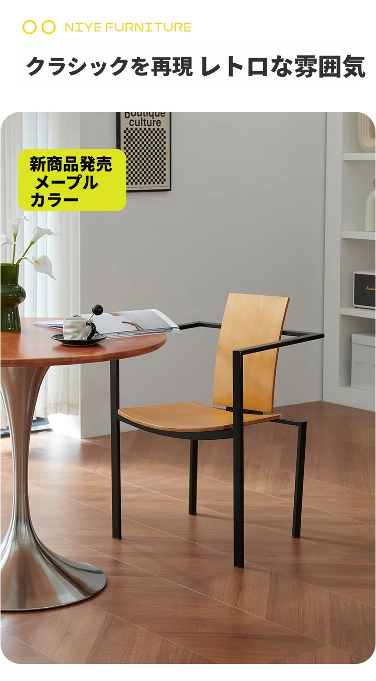 メンフィスチェア 北欧風 ミッドセンチュリー 家庭用 背もたれ付き シングルアーム ダイニングチェア アイアン製 リラックスデザイン 木製 デザイナーズチェア おしゃれなインテリアに最適!