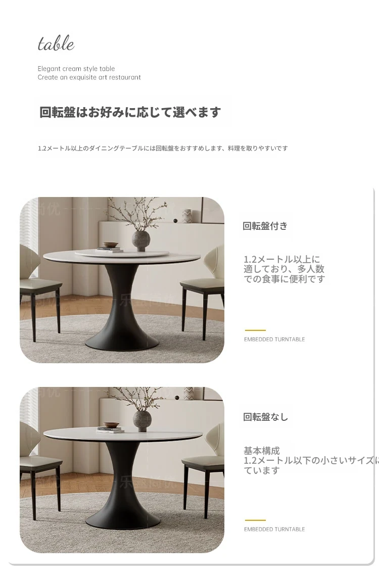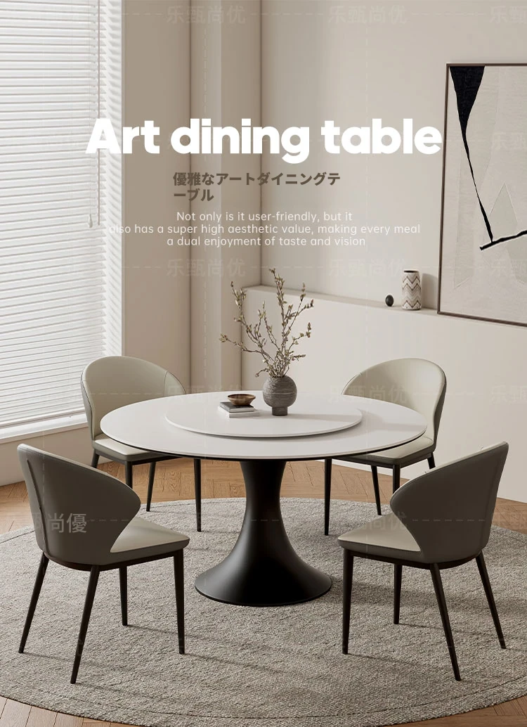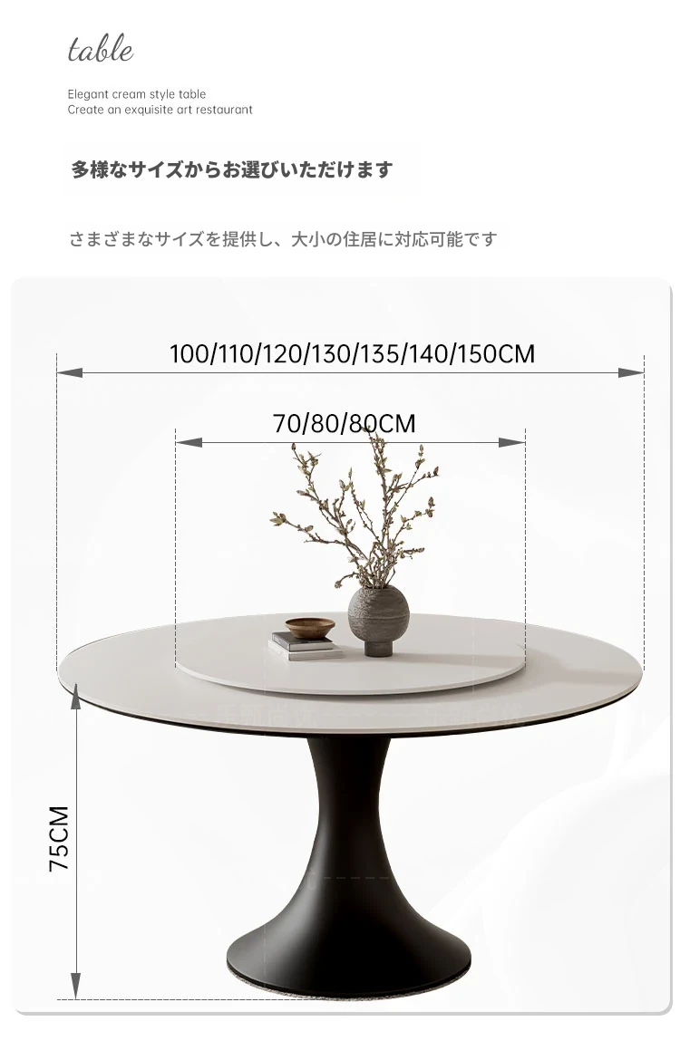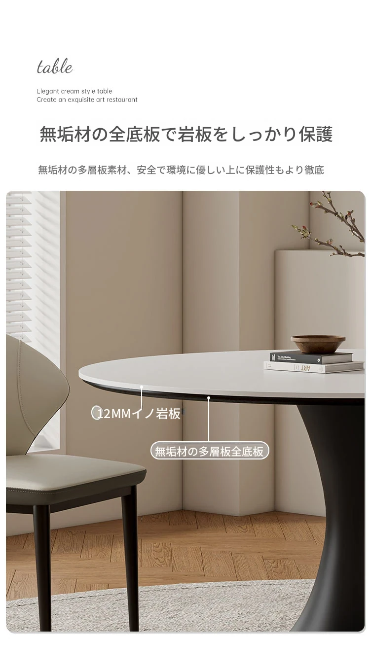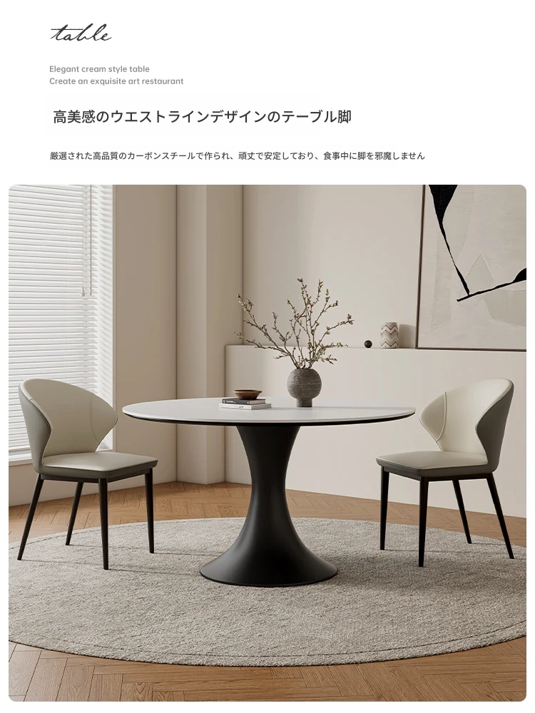 黒い円形テーブル 家庭用 岩板素材 小さなリビングに最適 モダンでシンプルなデザイン 省スペース1.2メートル 食事を楽しむスタイリッシュな選択!