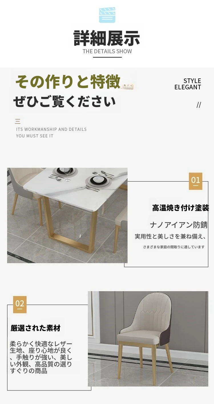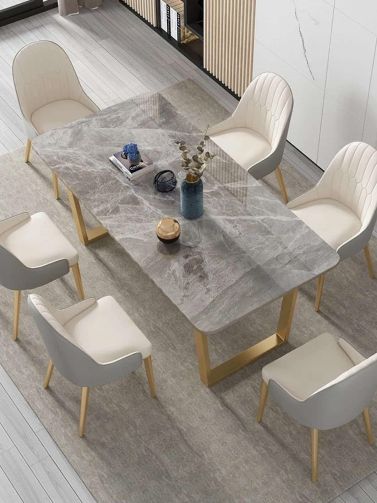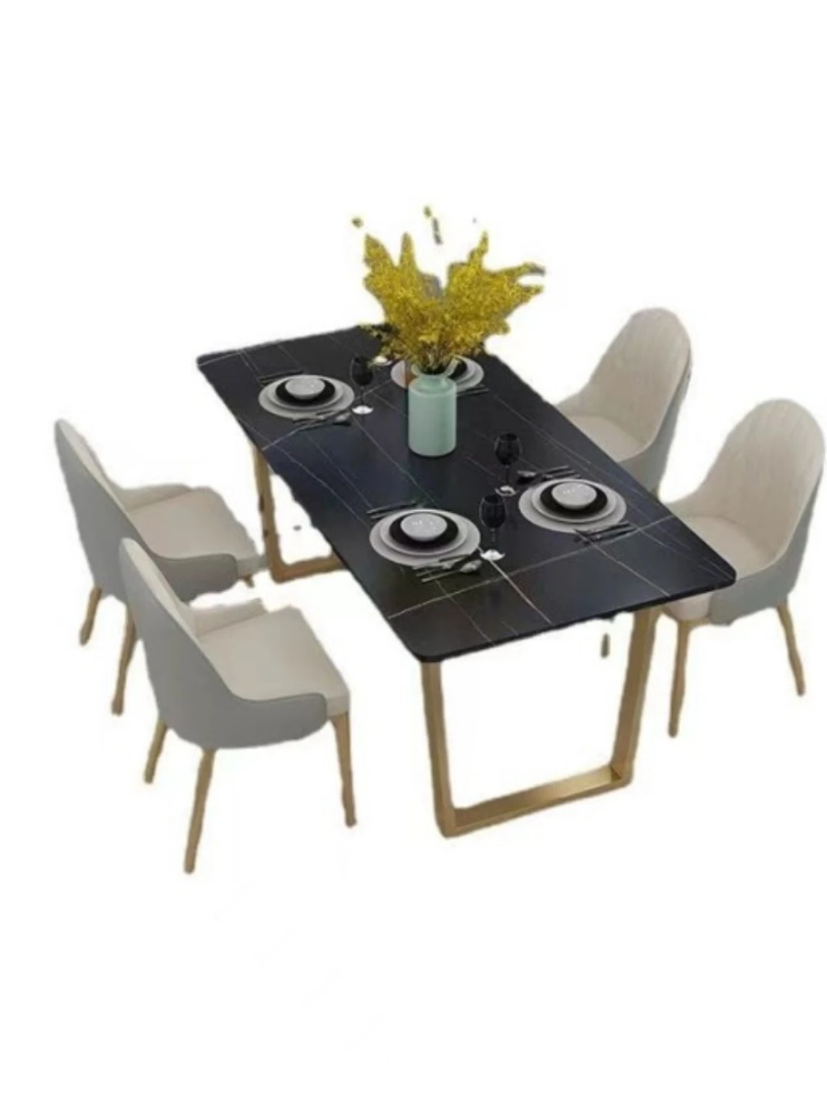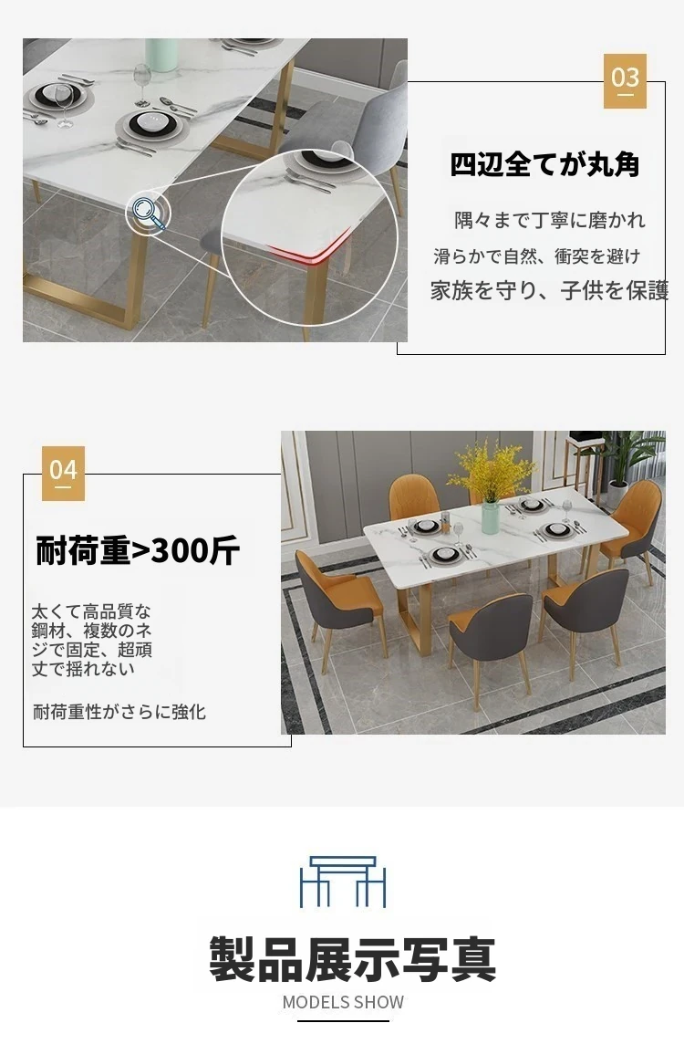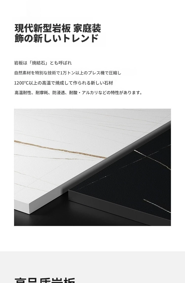 軽やかなラグジュアリーの岩板ダイニングテーブル、モダンでシンプルなデザイン。小さなスペースに最適な長方形、北欧スタイルの大理石で、4人掛けの椅子セット。おしゃれな食事空間を演出!