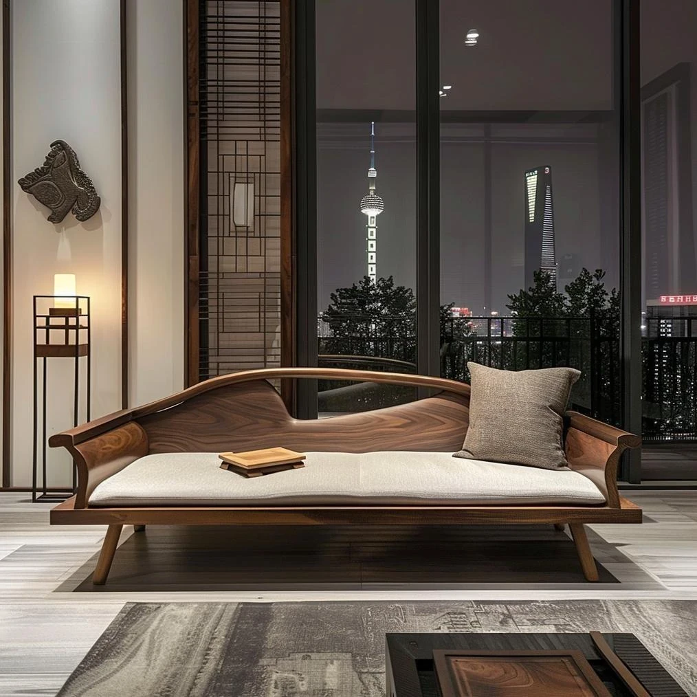 北米産ブラックウォルナットとホワイトアッシュの家具 新中式現代スタイル 2025年版 オフィス・ホテル・民宿に最適なローハンベッドと貴妃ソファ