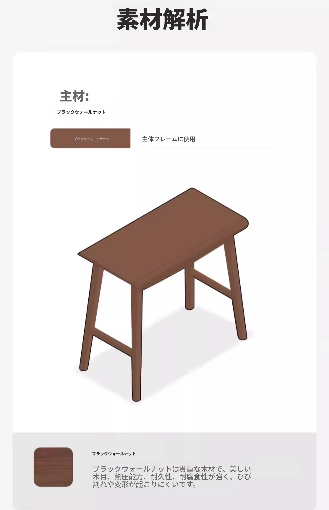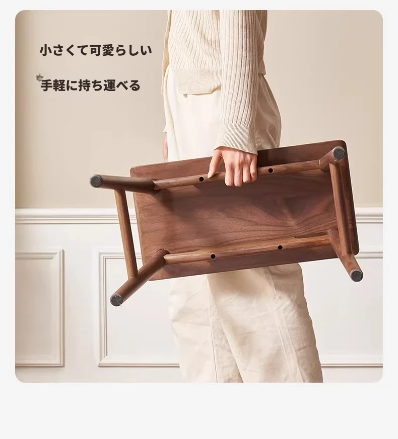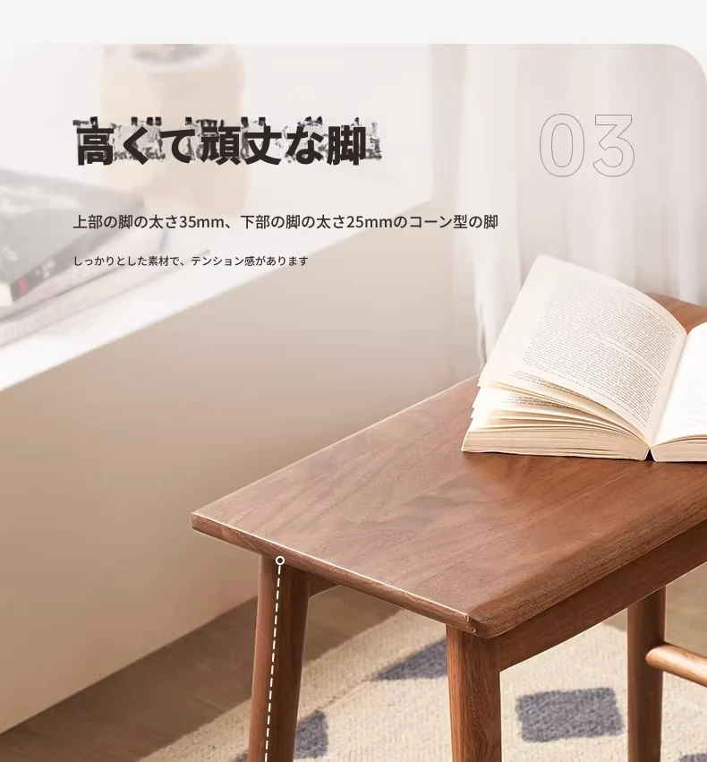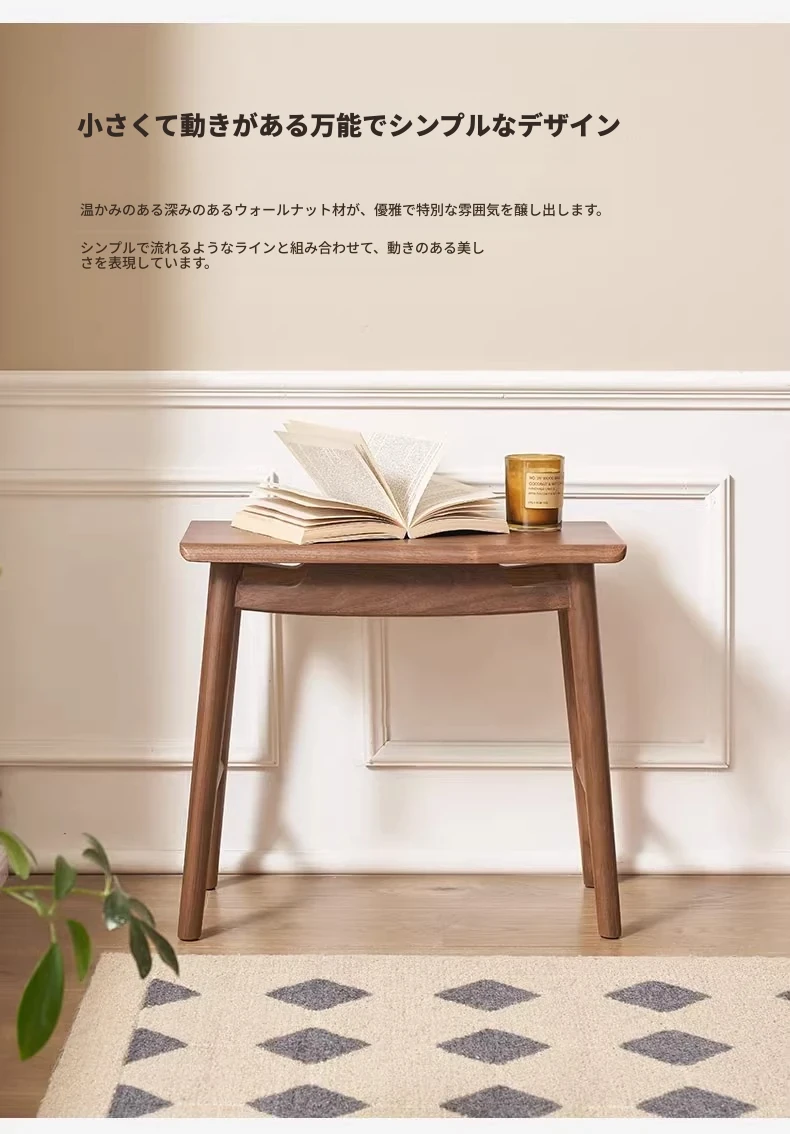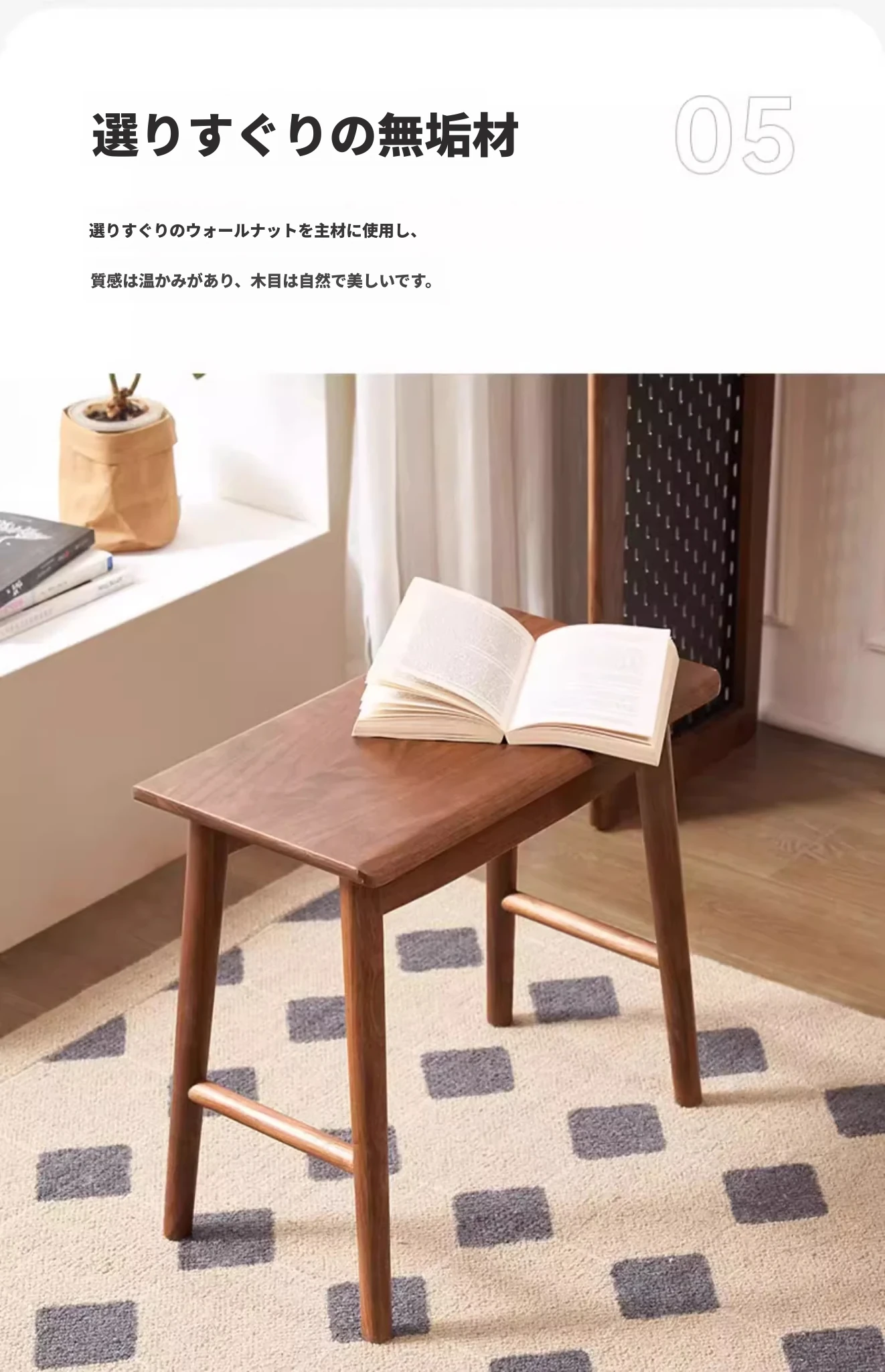 北欧スタイル全木製ドレッシングスツール|モダンでラグジュアリーなウォールナットウッド製|コンパクトな寝室にぴったりの馬鞍型スツール|美しさと機能性を兼ね備えたアイテムです!