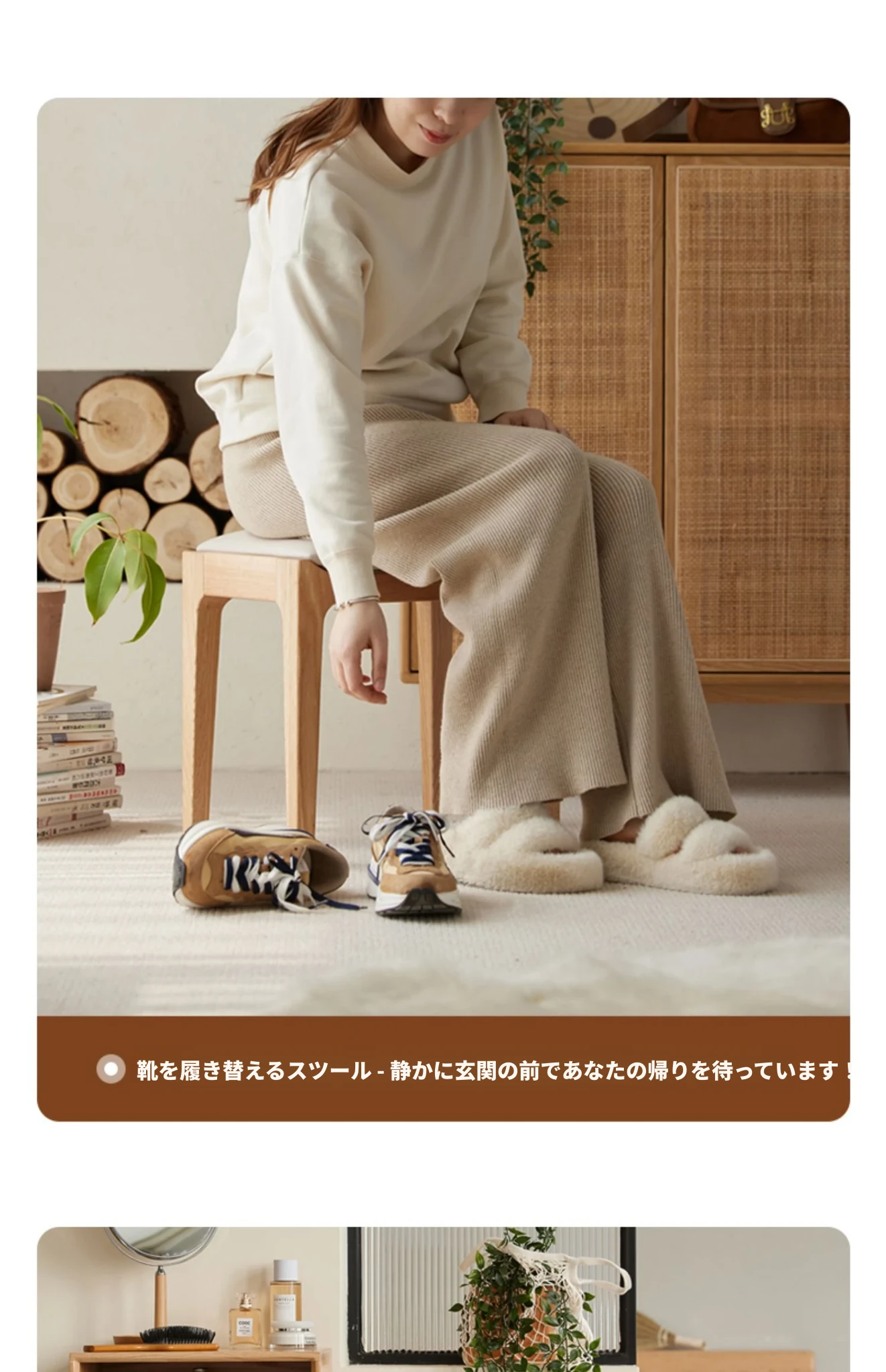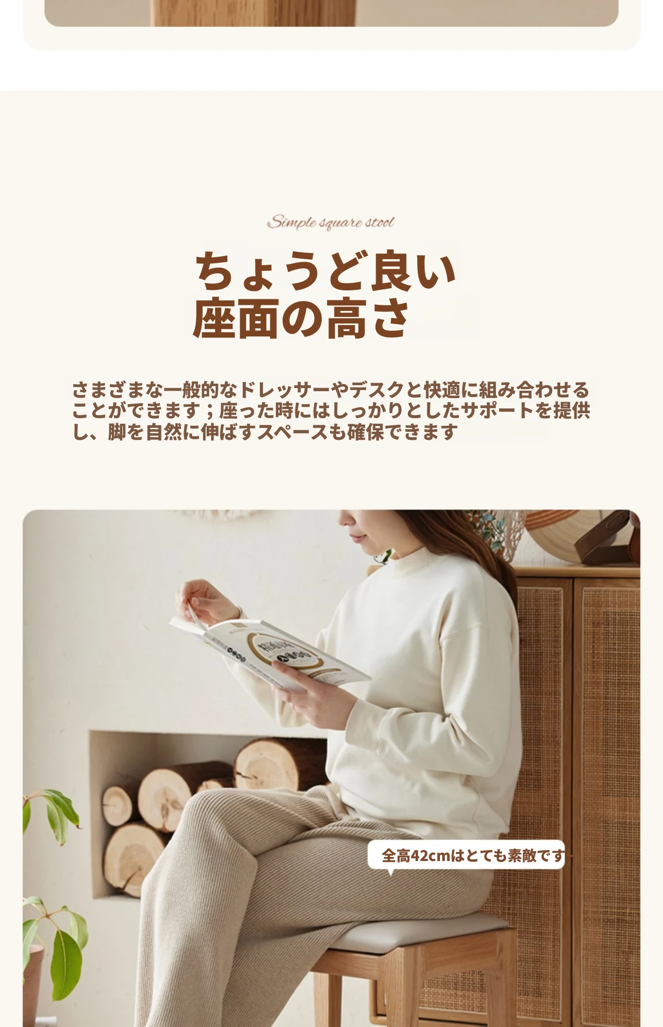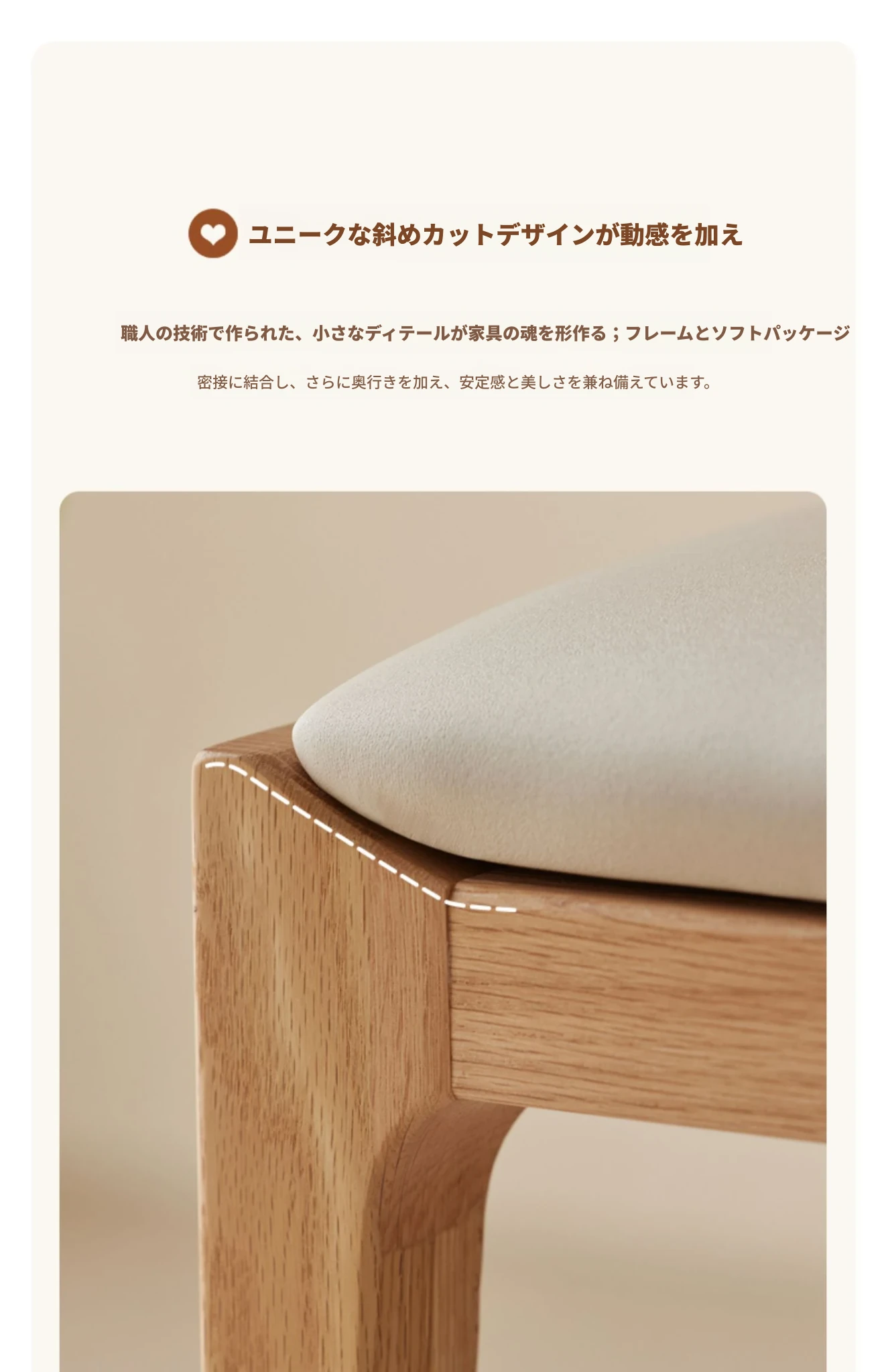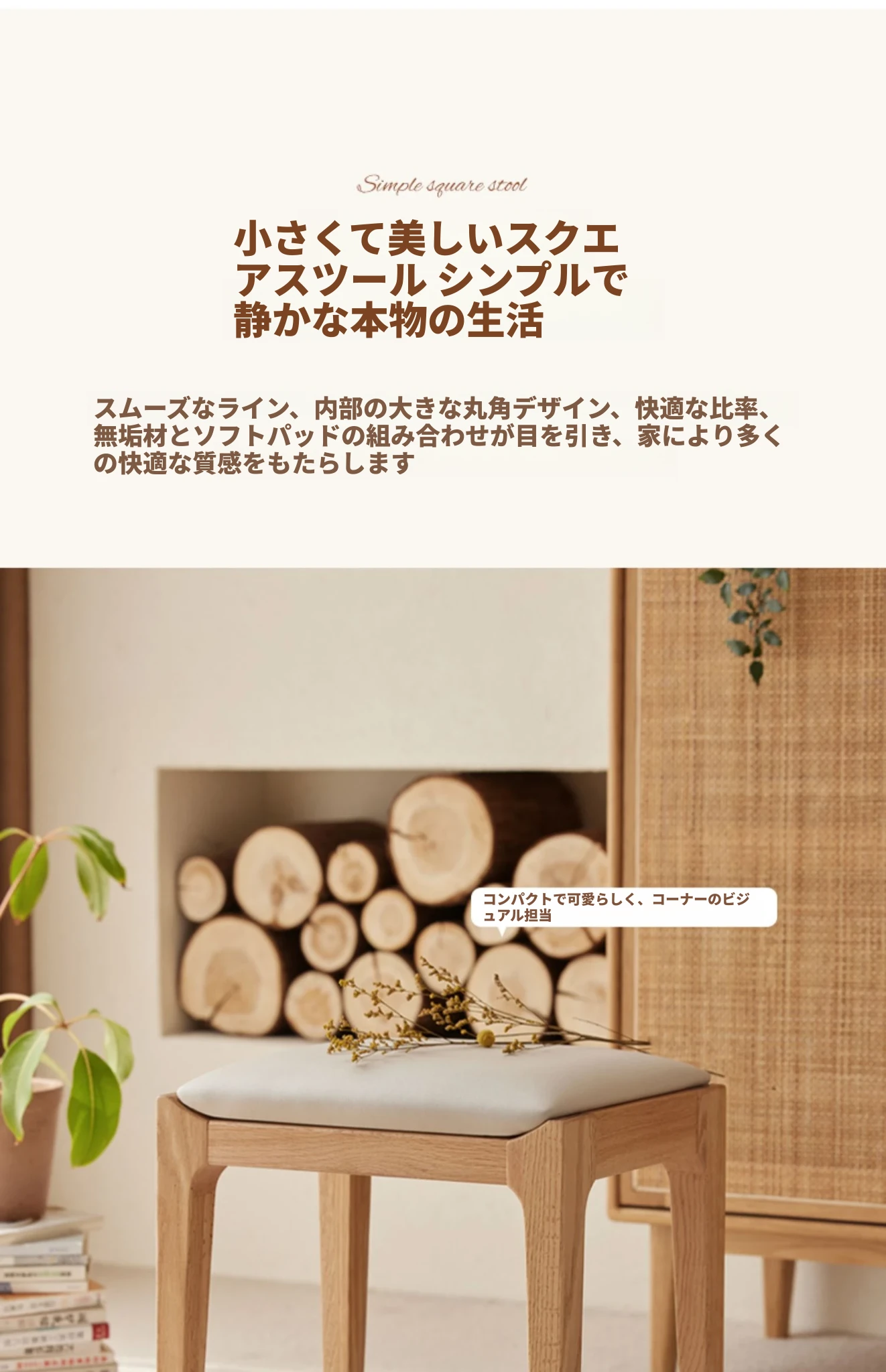 北欧スタイルの無垢材ドレッシングスツール - モダンでシンプル、寝室にぴったりのオーク製ソフトパッキングスツール。小型スペースにも最適な和風の木製メイクアップスツールで、洗練された雰囲気を演出します。