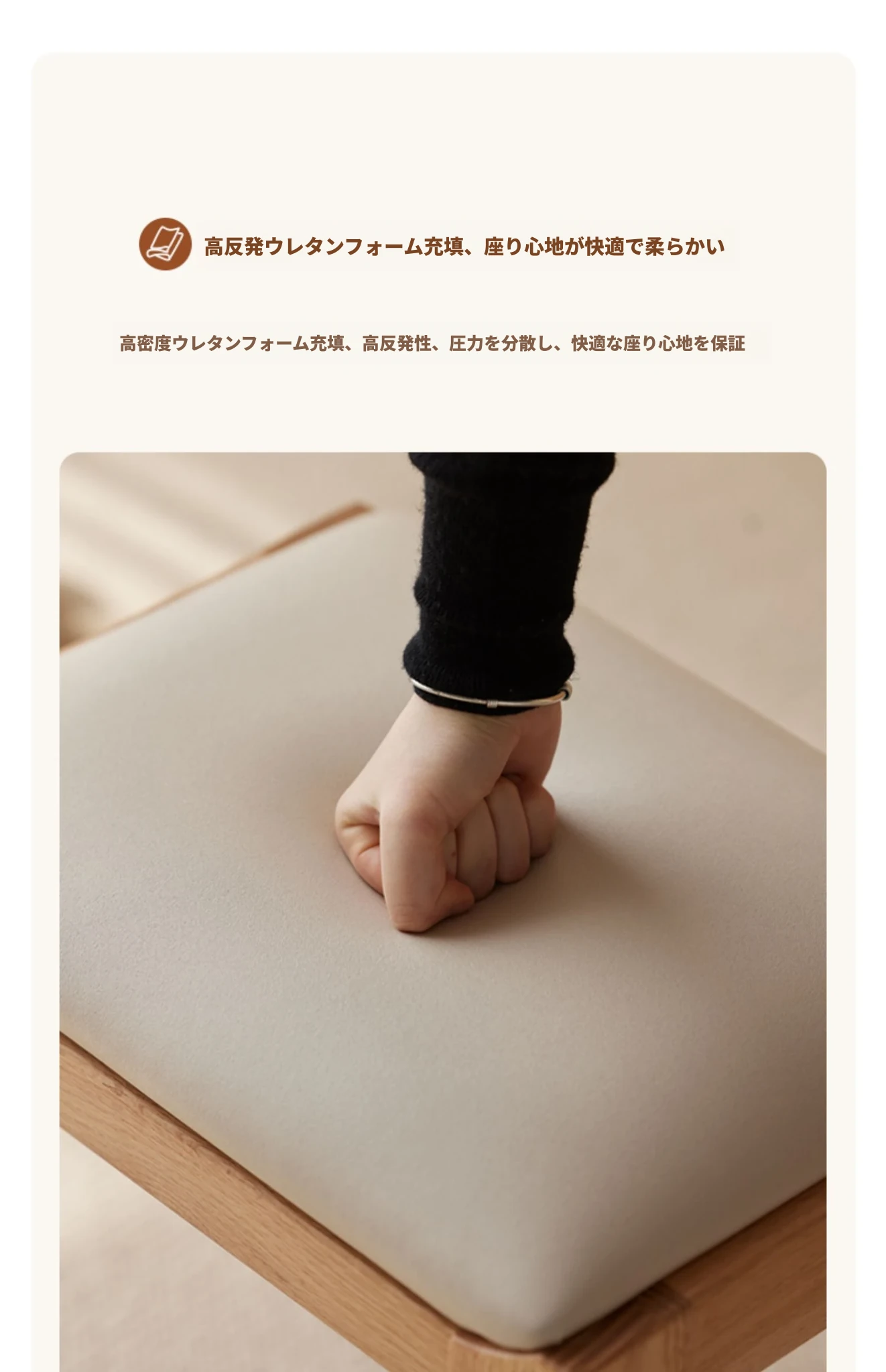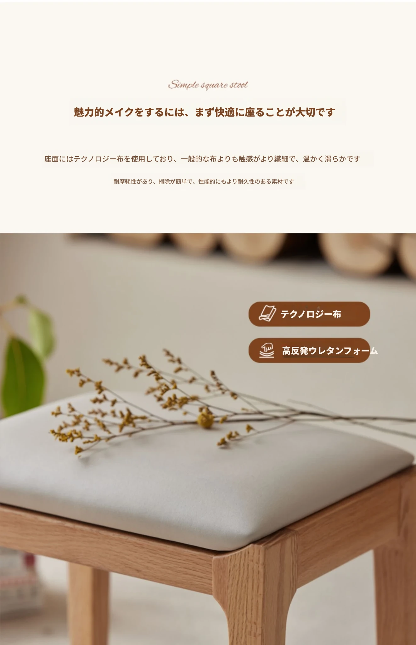 ナチュラルウッドカラー-ソフトパッキングドレッシングスツール