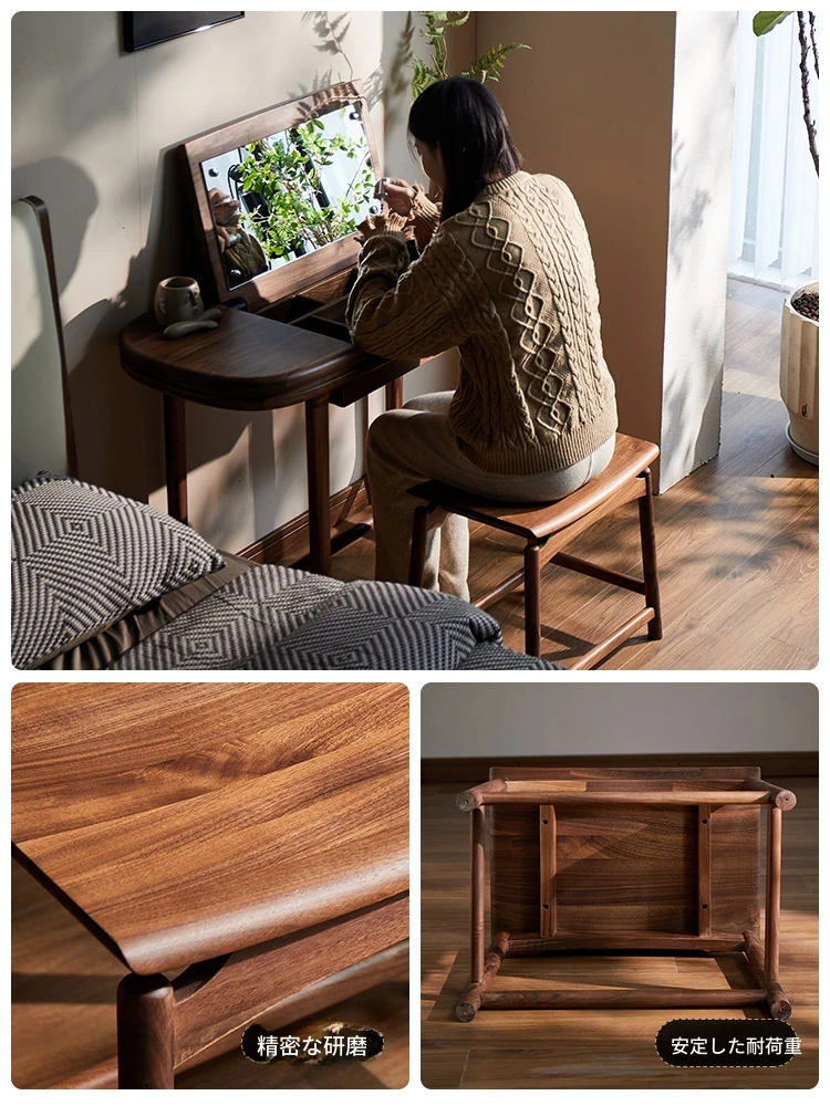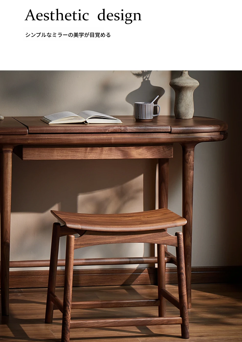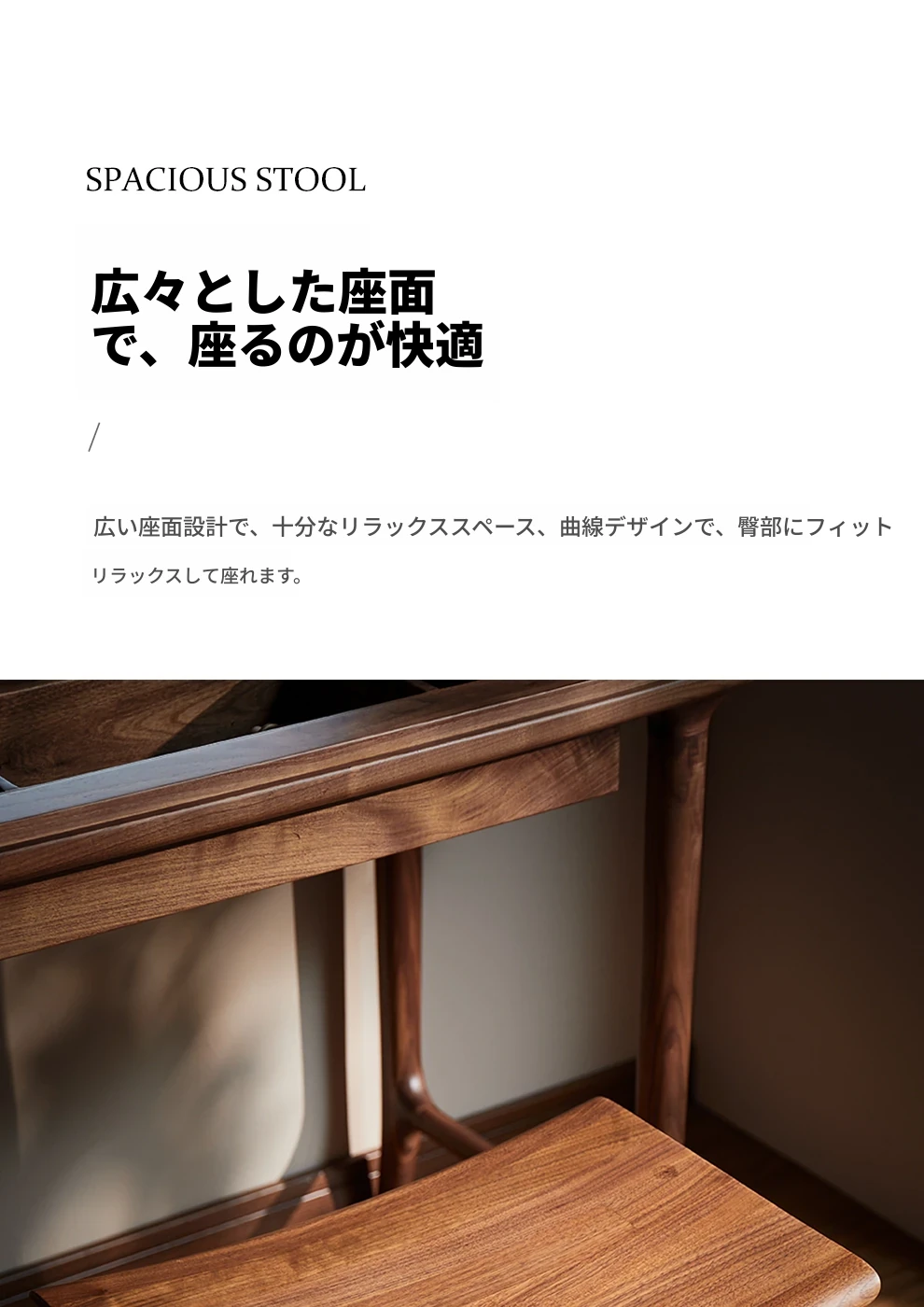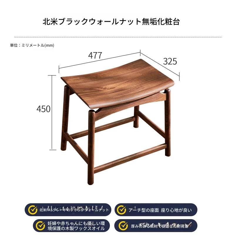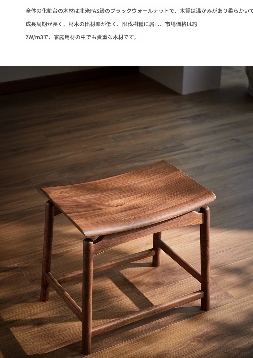 北米産ブラックウォールナット使用!おしゃれで高級感あふれる化粧台用スツール。寝室やリビングにぴったりなコンパクトなデザイン。贅沢なイタリアンスタイルで、あなたの毎日を特別に演出します!