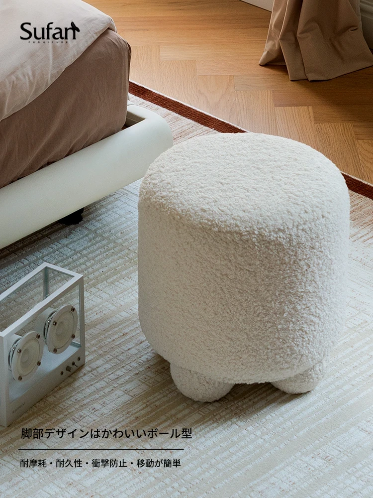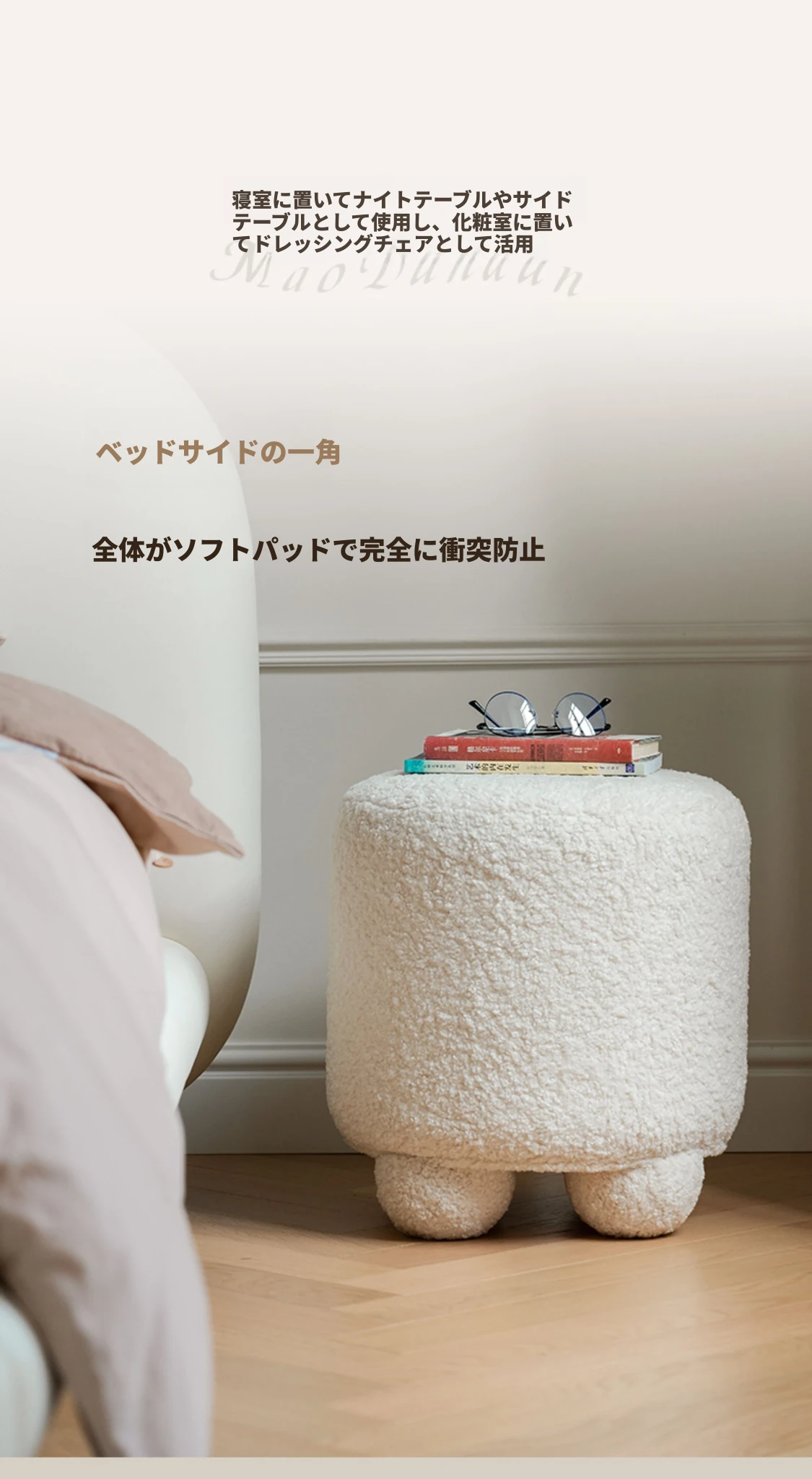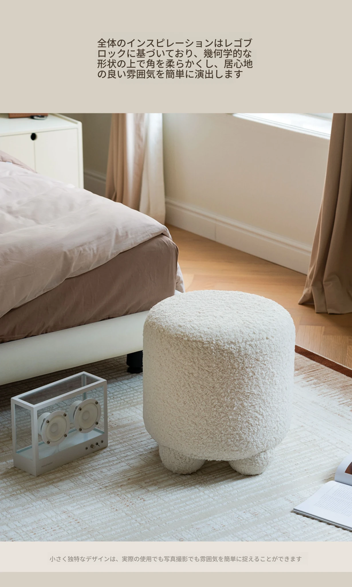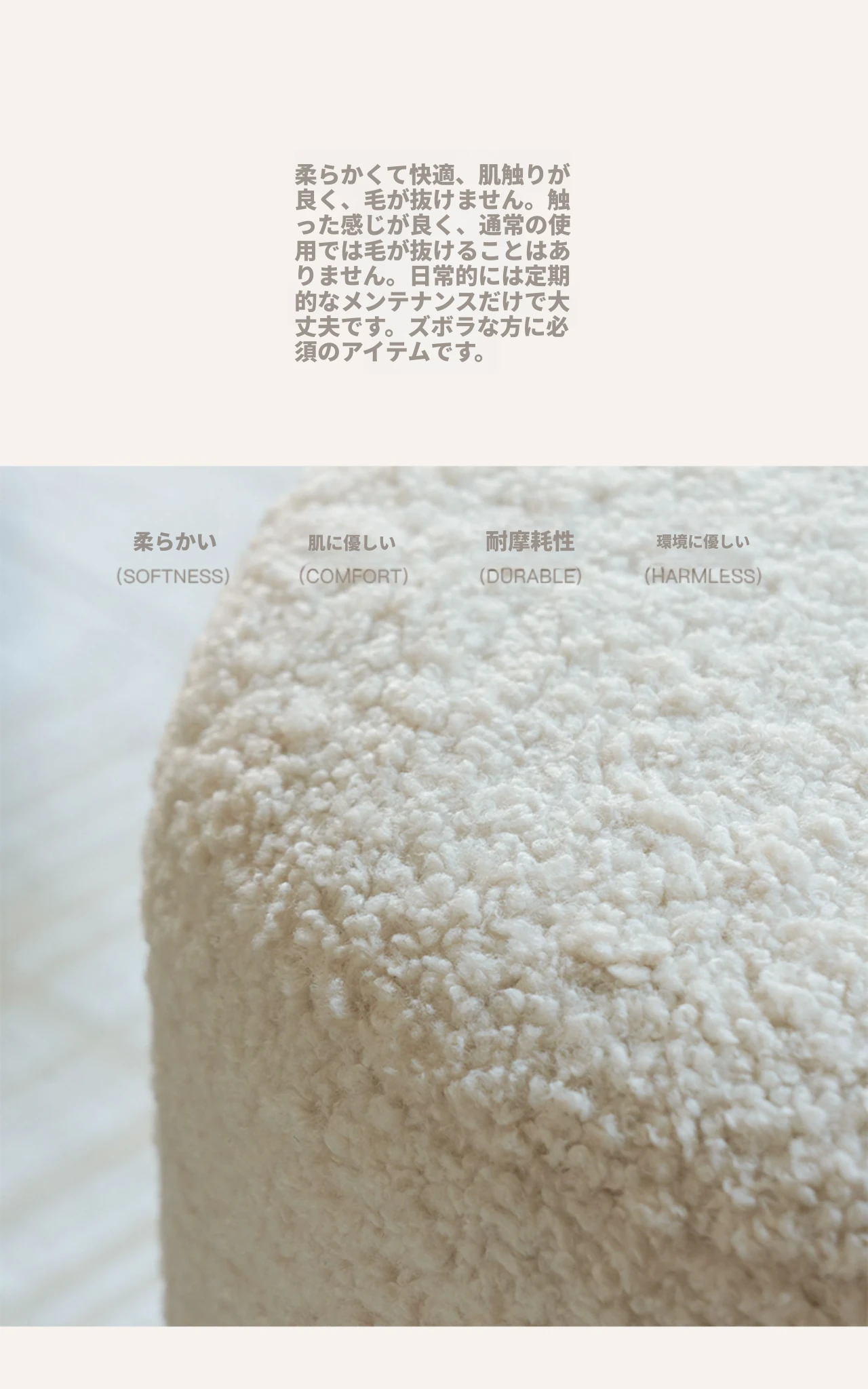 シフォンラムウールスツール / 優雅なフレンチスタイルのスツール / リビングやベッドルームにぴったりなベッドサイドスツールやカーペットスツール!快適さとスタイルを兼ね備えた、あなたの空間を華やかに彩るアイテムです。