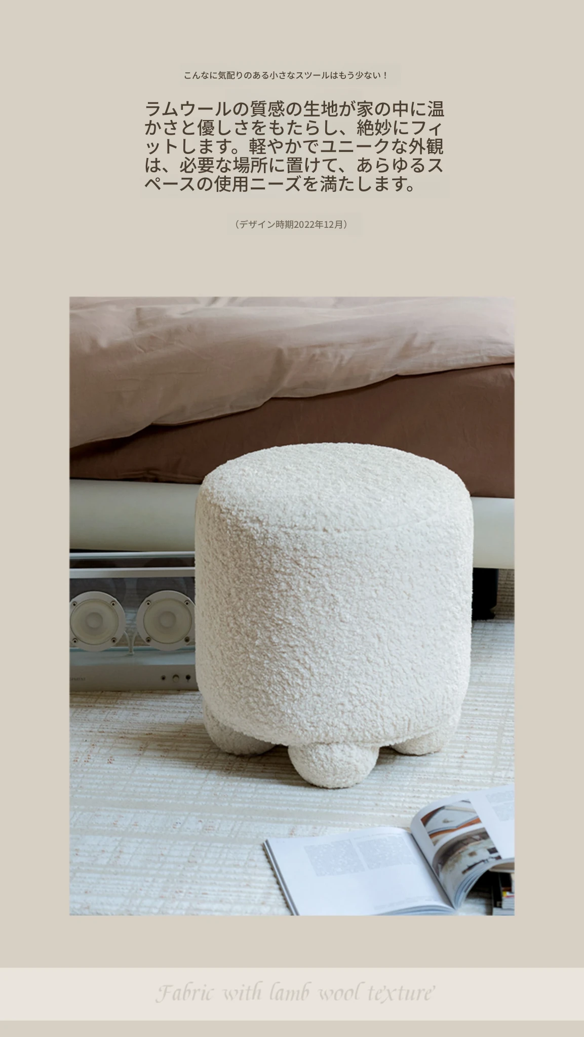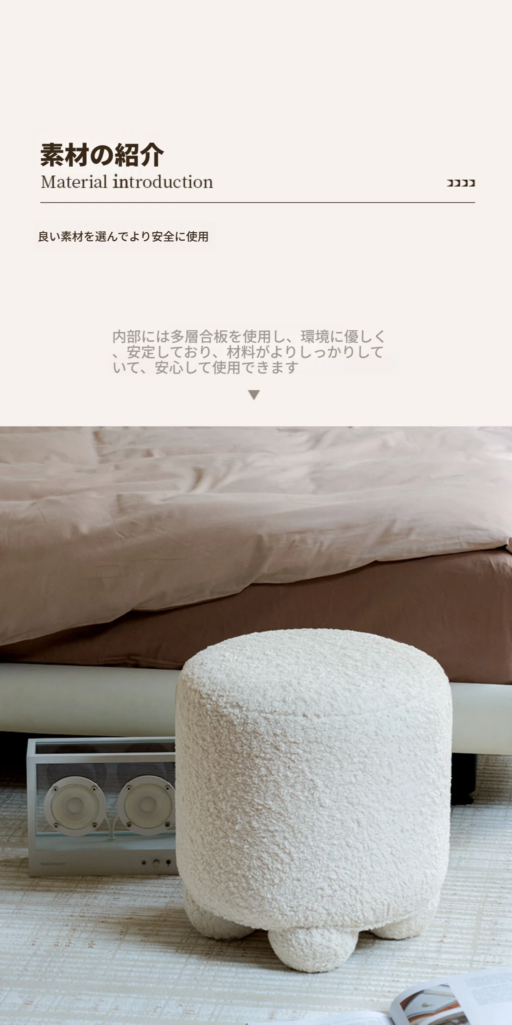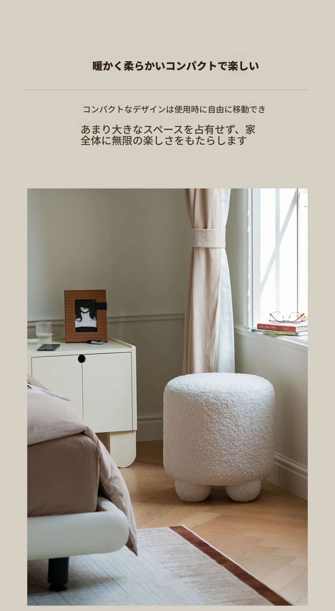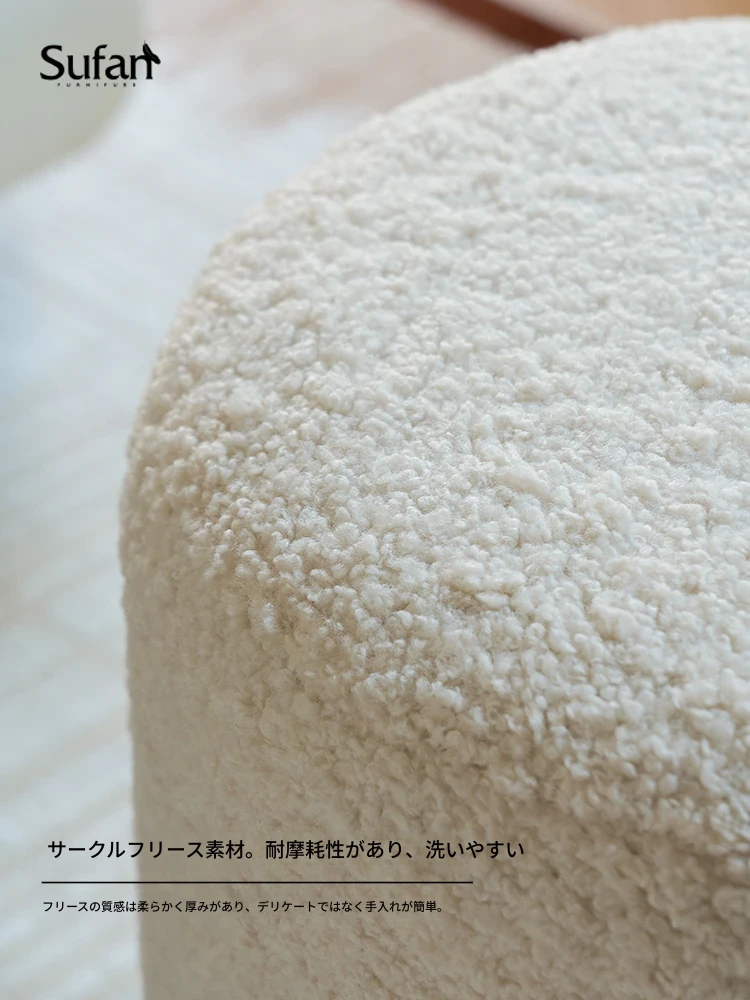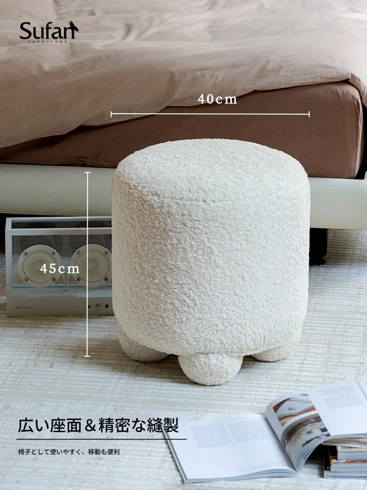 シフォンラムウールスツール / 優雅なフレンチスタイルのスツール / リビングやベッドルームにぴったりなベッドサイドスツールやカーペットスツール!快適さとスタイルを兼ね備えた、あなたの空間を華やかに彩るアイテムです。