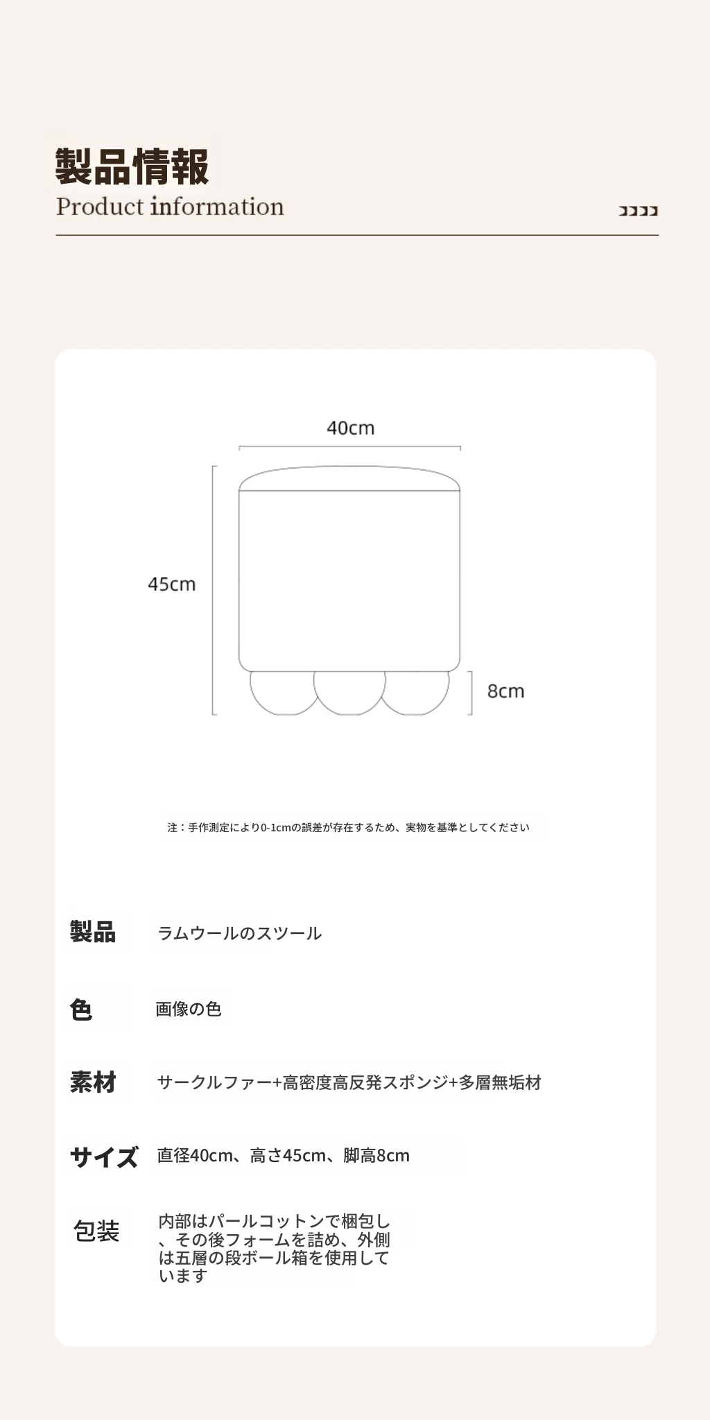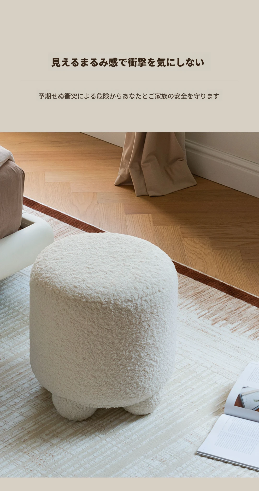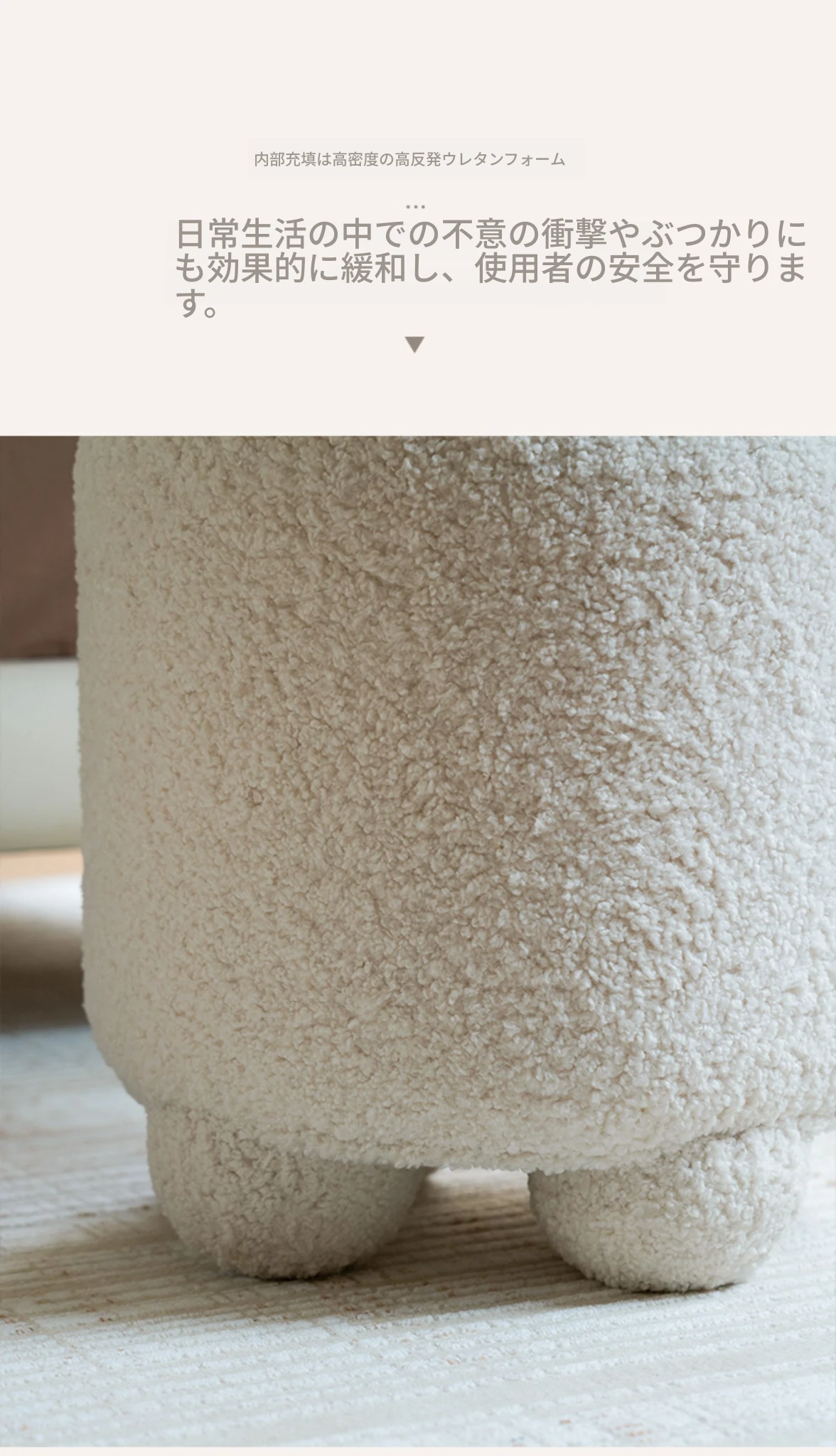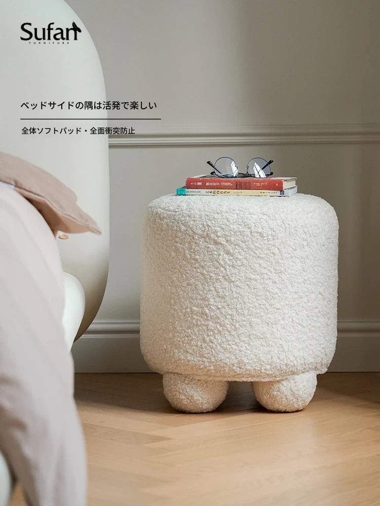 シフォンラムウールスツール / 優雅なフレンチスタイルのスツール / リビングやベッドルームにぴったりなベッドサイドスツールやカーペットスツール!快適さとスタイルを兼ね備えた、あなたの空間を華やかに彩るアイテムです。