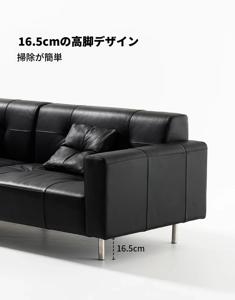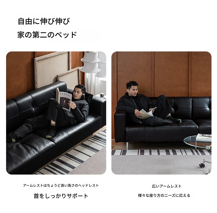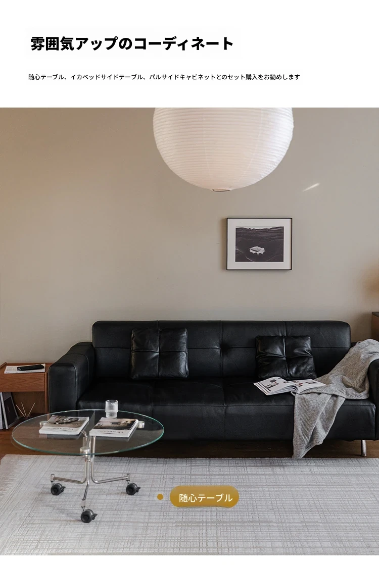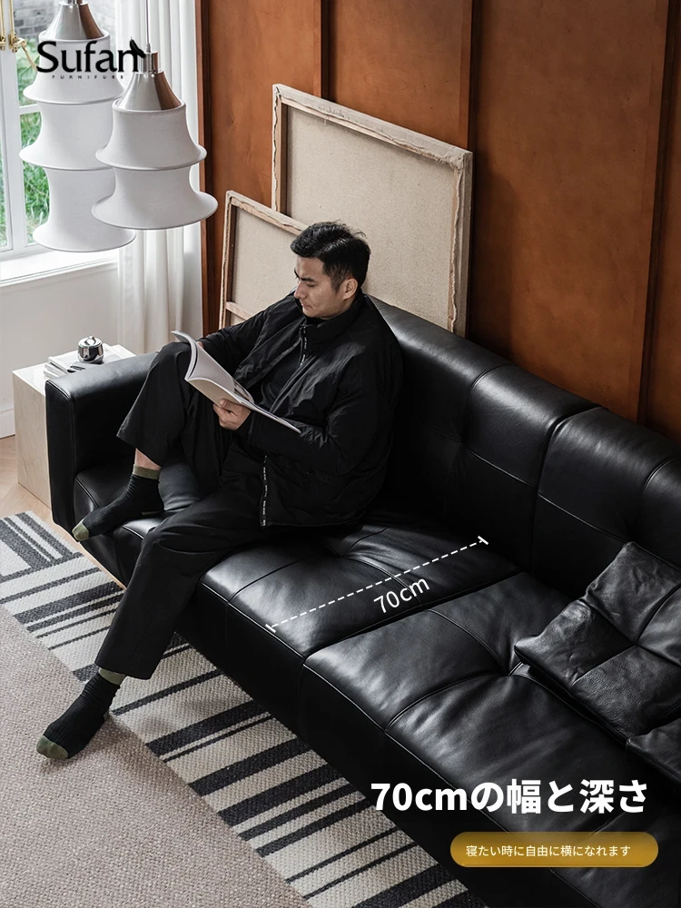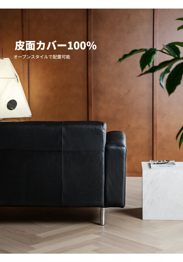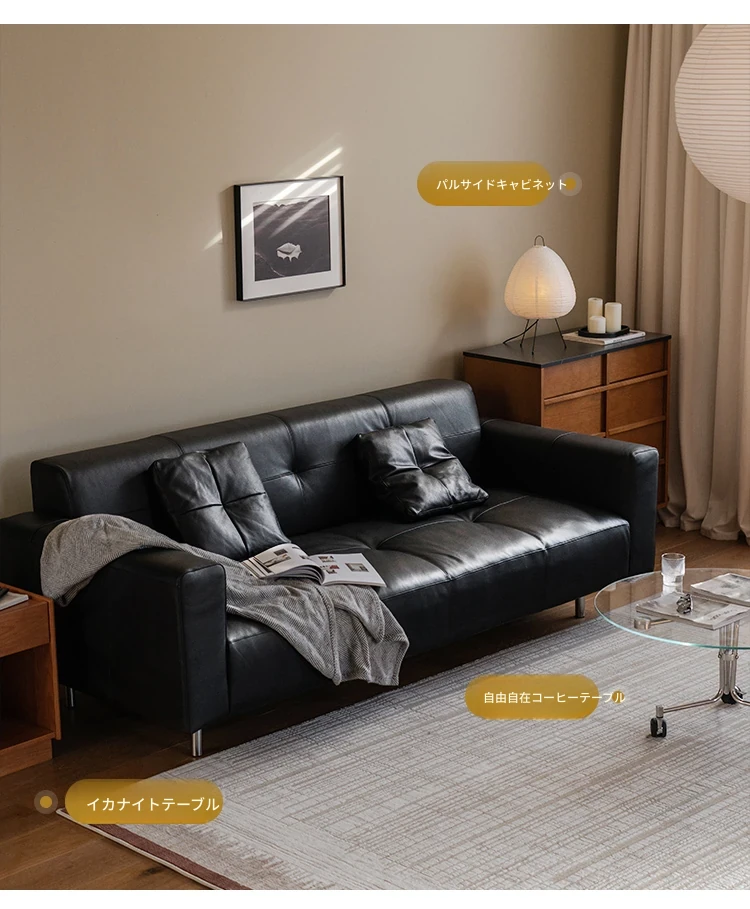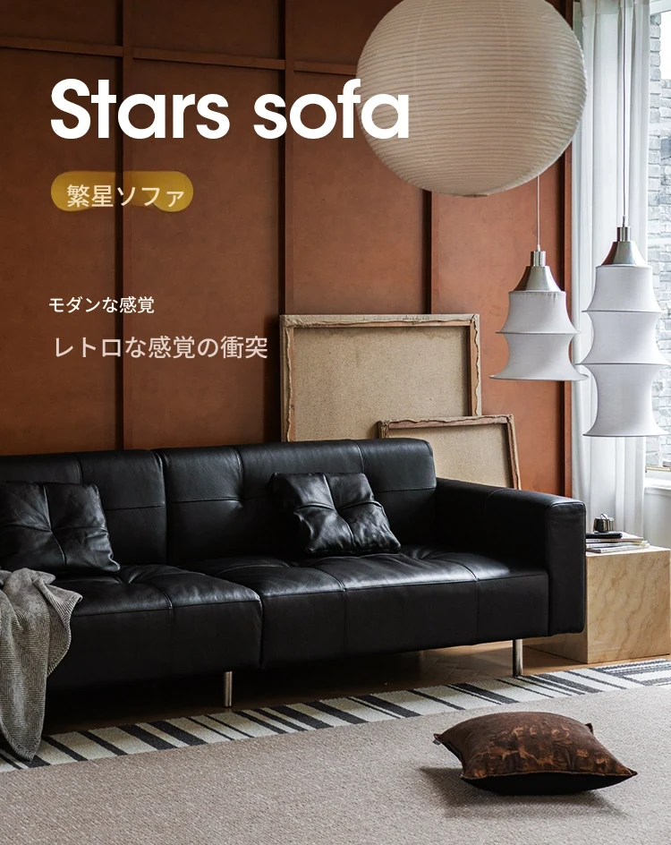 シュファン・スターリーネイトソファ / ヴィンテージ風ブラックレザー 一人暮らしにもぴったりなコンパクトサイズ