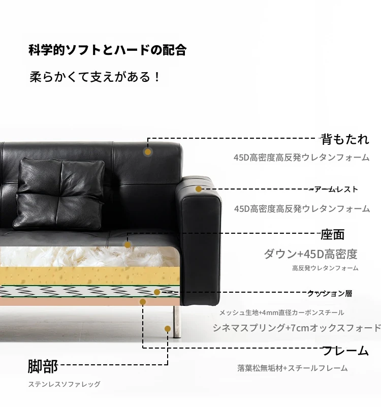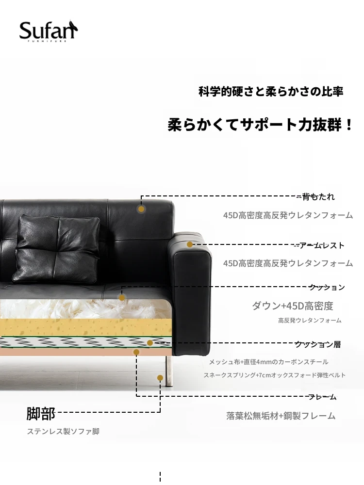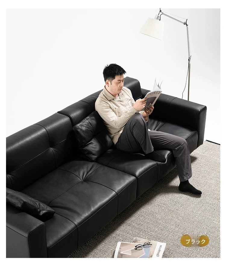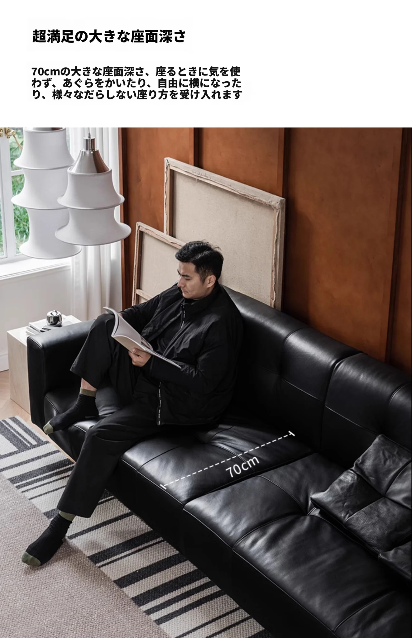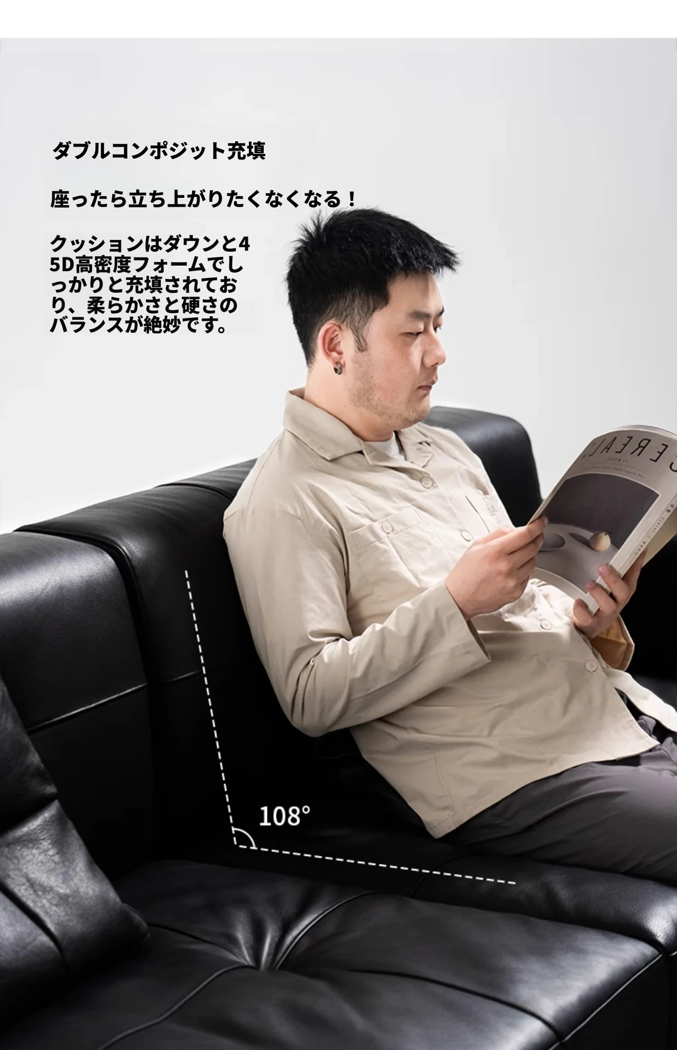 シュファン・スターリーネイトソファ / ヴィンテージ風ブラックレザー 一人暮らしにもぴったりなコンパクトサイズ