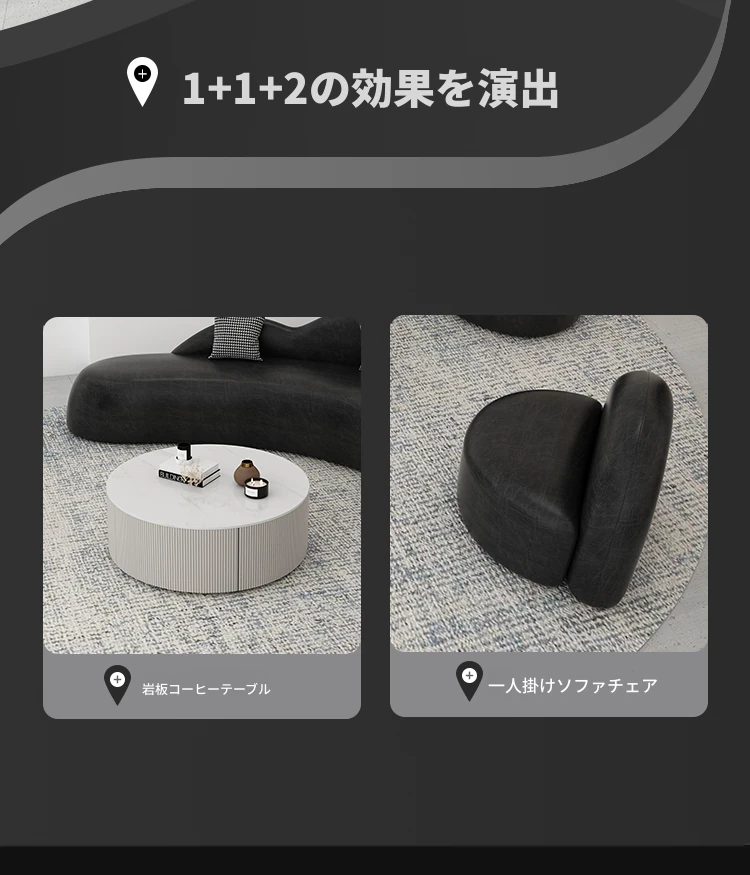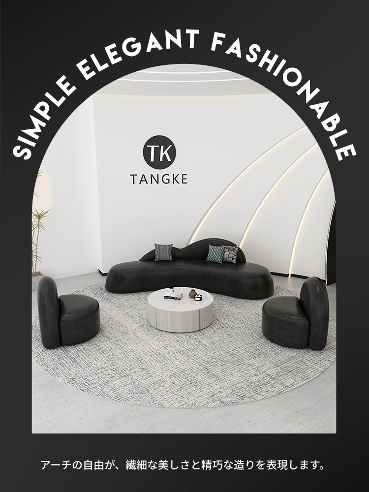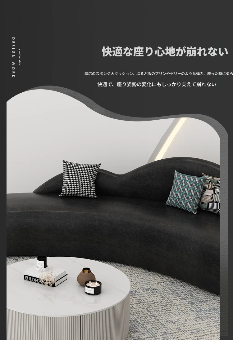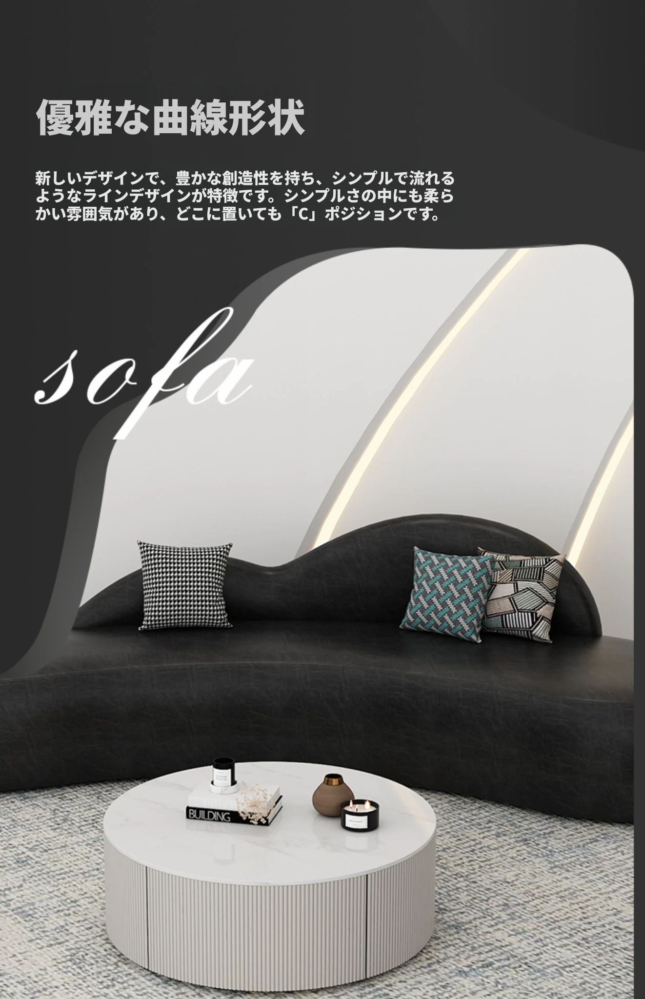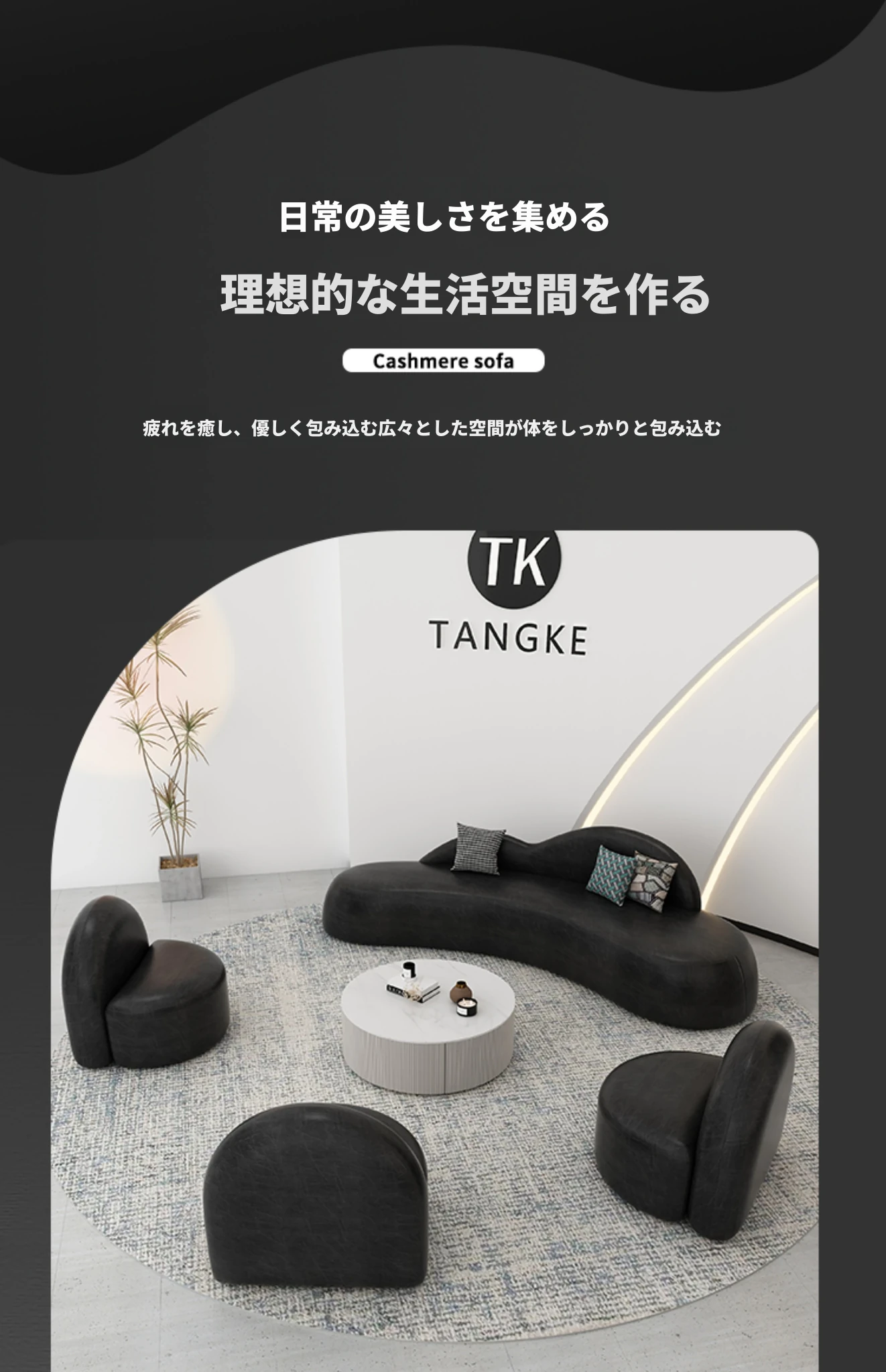 新作!おしゃれな異形ソファ - 合皮素材で小型リビングやモデルルーム、美容院の待合スペースにも最適!快適な3人掛けで、リラックスしたひとときを提供します。お部屋をスタイリッシュに彩る一品です!