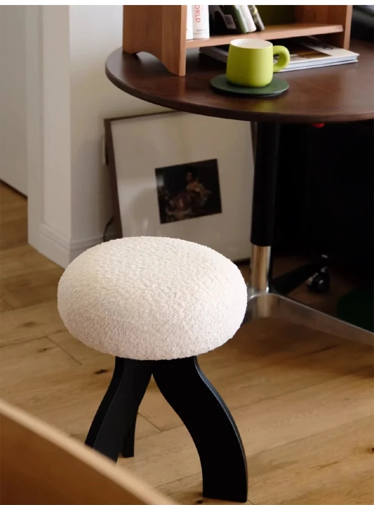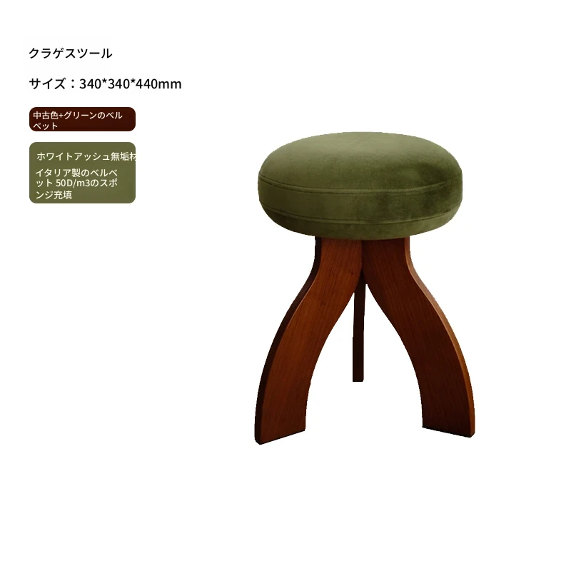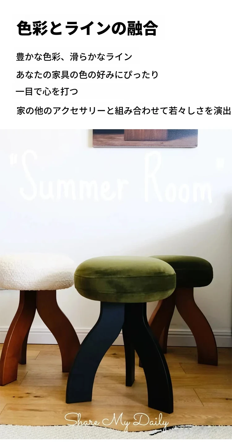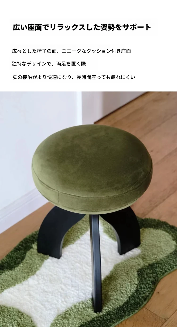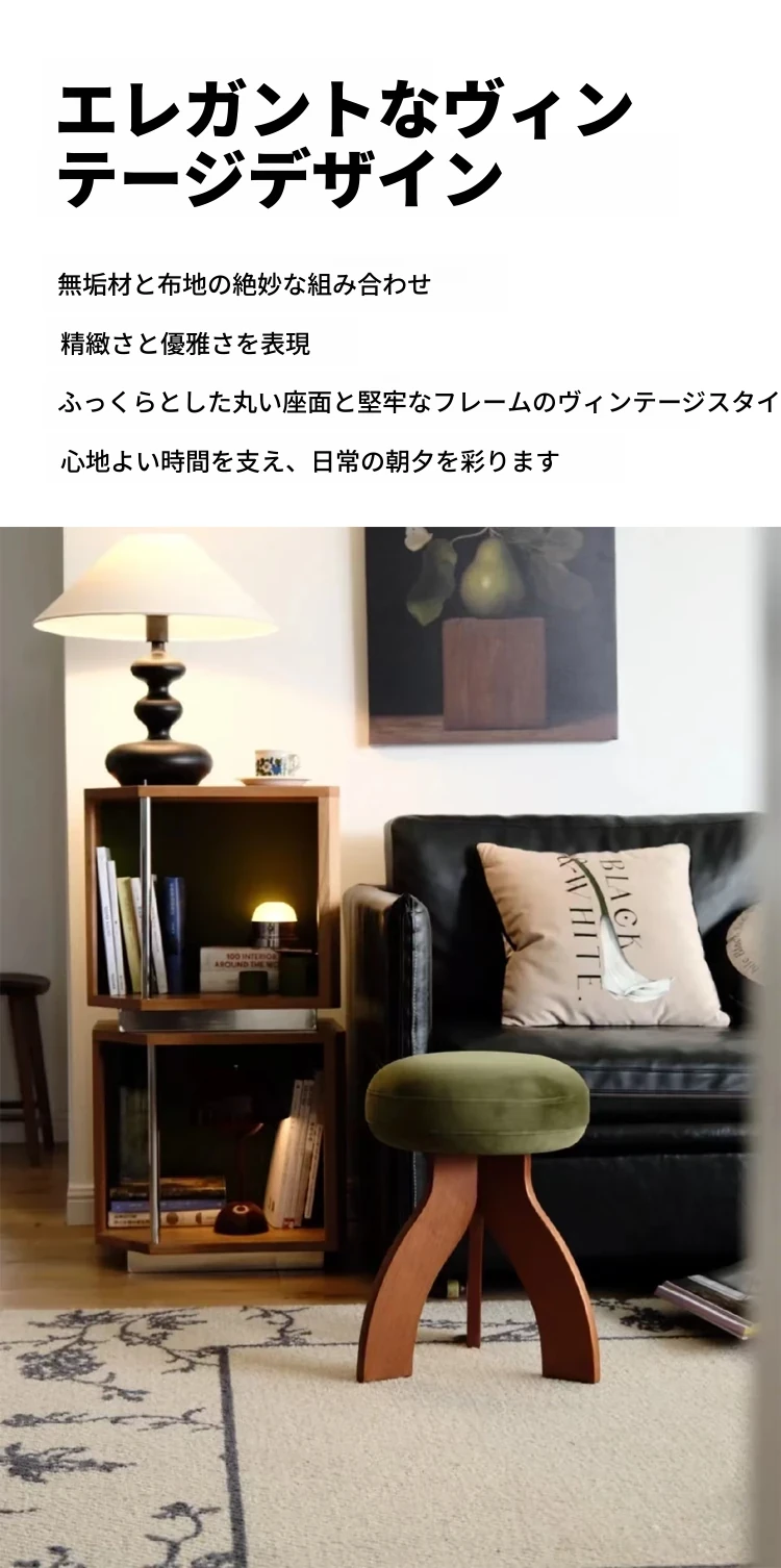 実木製の化粧椅子 - おしゃれな女性のためのヴィンテージ風ドレッシングテーブル用スツール、靴を履く時にも最適な機能性とデザインを兼ね備えています。あなたの寝室を美しく彩るアイテムです!