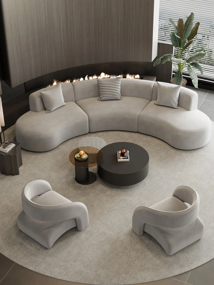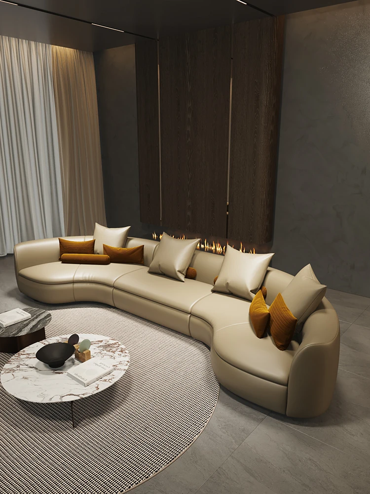 イタリアンラグジュアリー!創造的なアーチ型のカーブを持つハーフ円形レザーソファ。高級感溢れるデザインで、リビングやゲストルームに最適!大小さまざまな住宅やヴィラにフィットします。あなたの空間を特別に演出します。