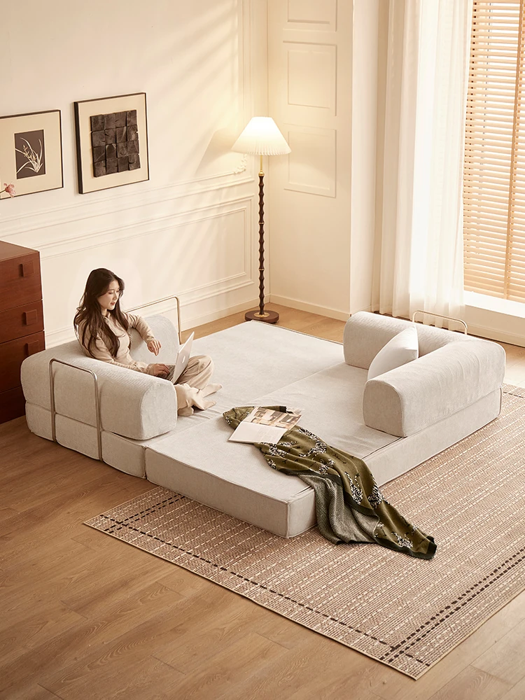 レトロスタイルのモジュラー布製ソファ!小型リビングにぴったりなダブルスリーパー、折りたたみ式で多機能。おしゃれで快適な空間を演出し、あなたの生活をより豊かにします。