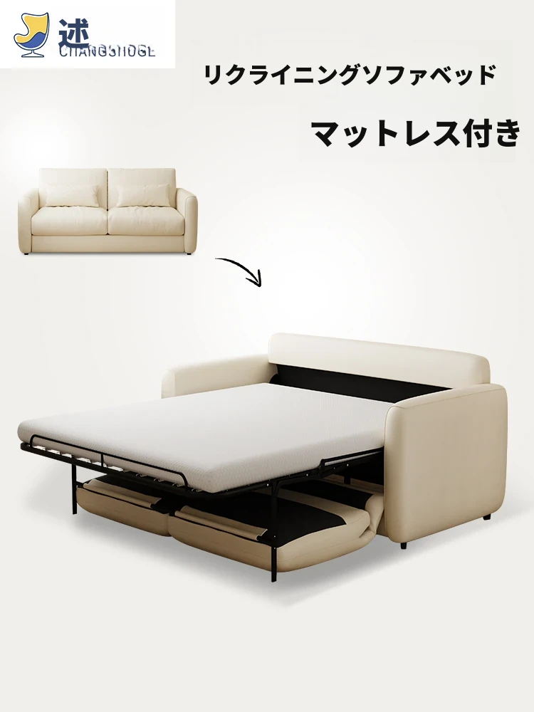 2025年新款!高品質本革折りたたみ式リバーシブルソファベッド - マットレス一体型、二通り使える多機能デザインで、リビングルームにぴったり!快適な眠りとおしゃれな空間を実現します。
