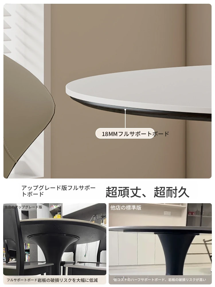 北欧スタイルの天然木色の岩板テーブル&チェアセット - 小スペースにぴったり!和風のブナ材使用、猫耳デザインで可愛さ満点の円形・四角形両用ダイニングテーブル。おしゃれな食卓を演出します!