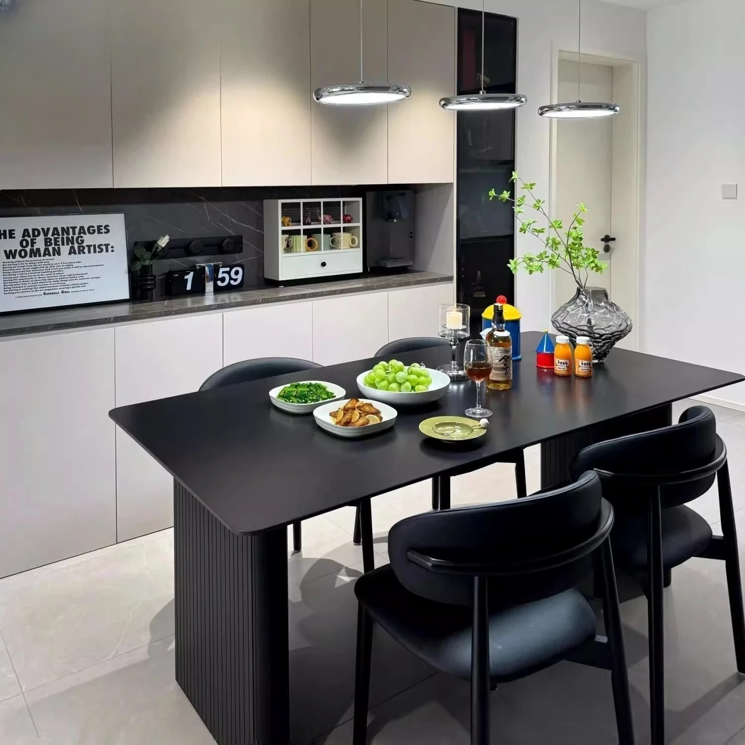 イタリアンラグジュアリーなマットブラックの現代的な長方形ダイニングテーブルセット - シンプルでスタイリッシュ、小スペースにもぴったりな家庭用ダイニングチェアとのコンビネーション!