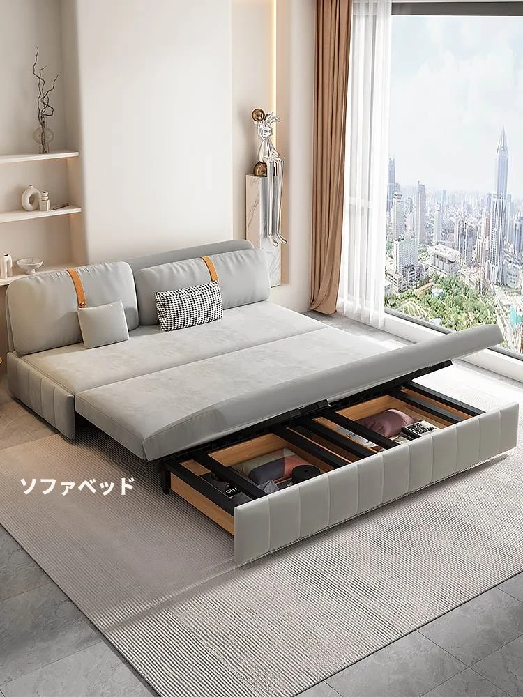 香港送料無料!実木ソファベッド 折りたたみ式2way 1.5m収納付き 伸縮可能な多機能 小型住宅に最適な快適なリビング空間を実現!
