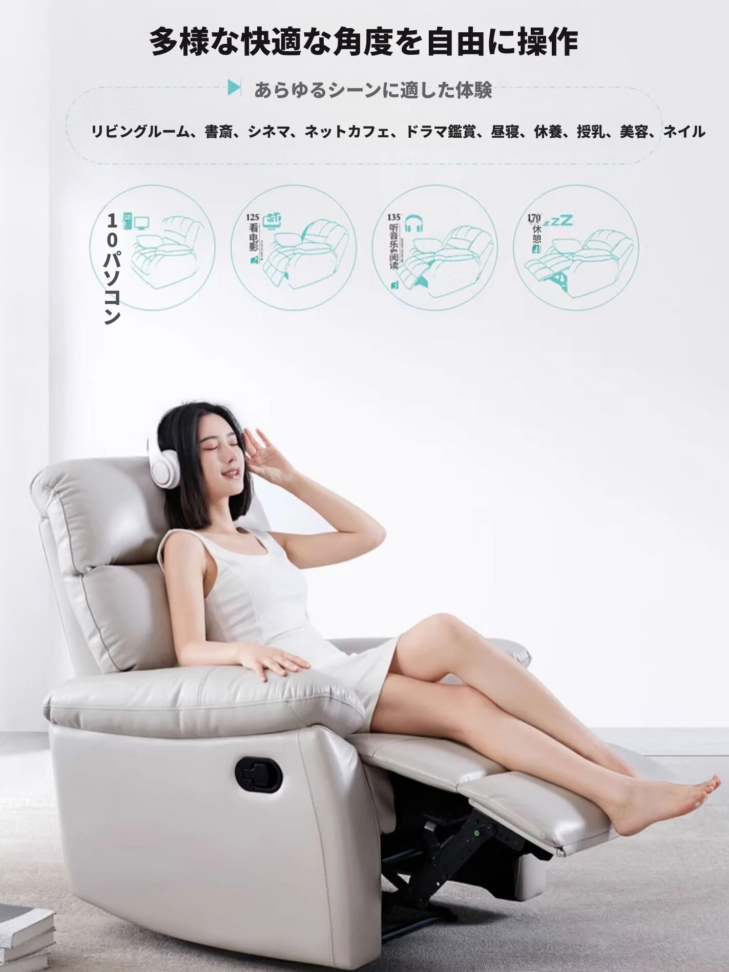 一人用電動機能ソファー|テクノロジー布製|小型リビングに最適|回転式スペースチェア|リクライニング可能|ネイルサロンにも最適なラウンジャーソファー!快適さとスタイルを両立したあなたのための一品です!