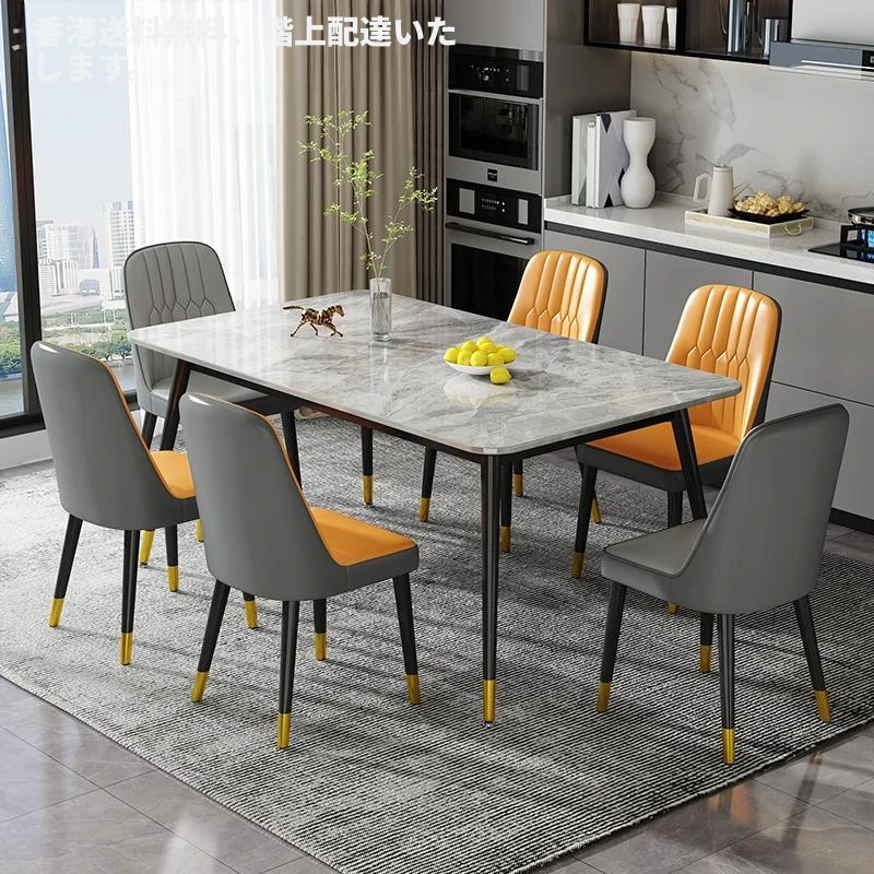 スタイリッシュな大理石ダイニングテーブル&チェアセット|モダンでシンプル、コンパクトな家族向け|人気のイタリアンレストランスタイルの食卓で、特別なひとときを演出!