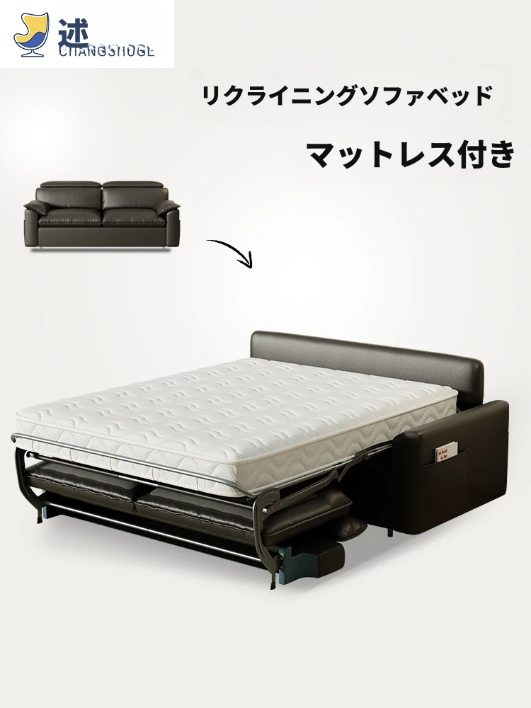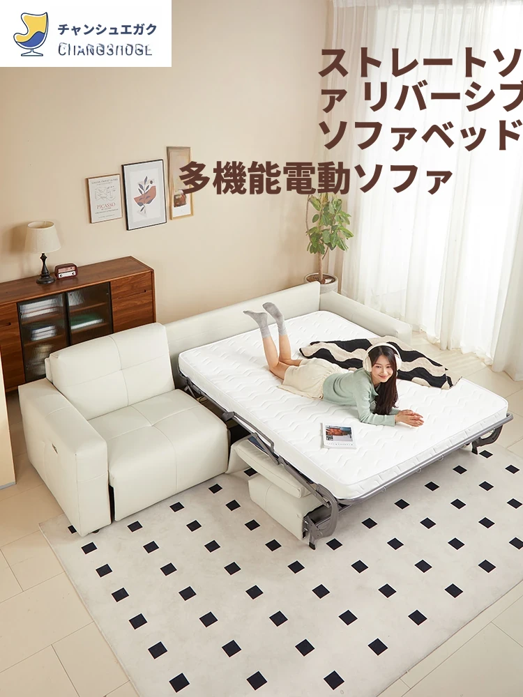 高級本革リバーシブルソファベッド - 折りたたみ式2 in 1、2025年新作!リビングに最適な電動多機能ソファで、スタイリッシュさと快適さを実現!