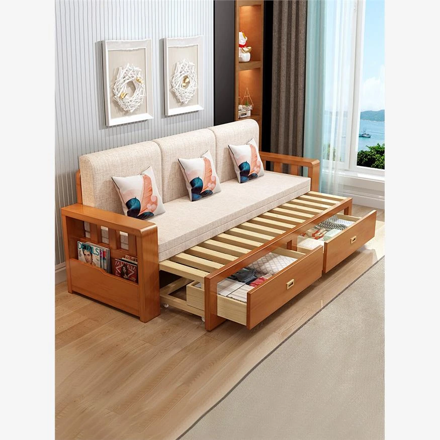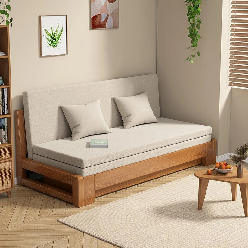 【香港送料無料】折りたたみ式中華スタイルの無垢材ソファベッド!リビングにぴったりのコンパクトデザイン、シングル・ダブル両用で座る・寝るが一体化。小さなお部屋でも大活躍!