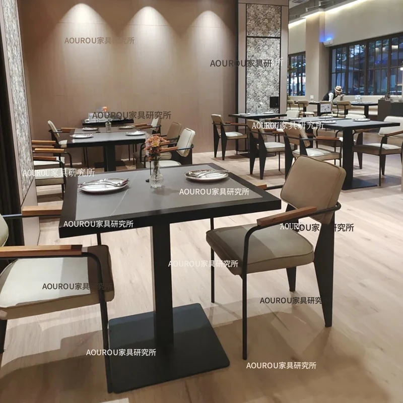 工業風カフェ&茶餐廳用の無垢材ロックボードテーブル&チェアセット!インスタ映えするスイーツや軽食に最適な人気の飲食店家具、火鍋にもぴったり!おしゃれで機能的な空間を演出します。